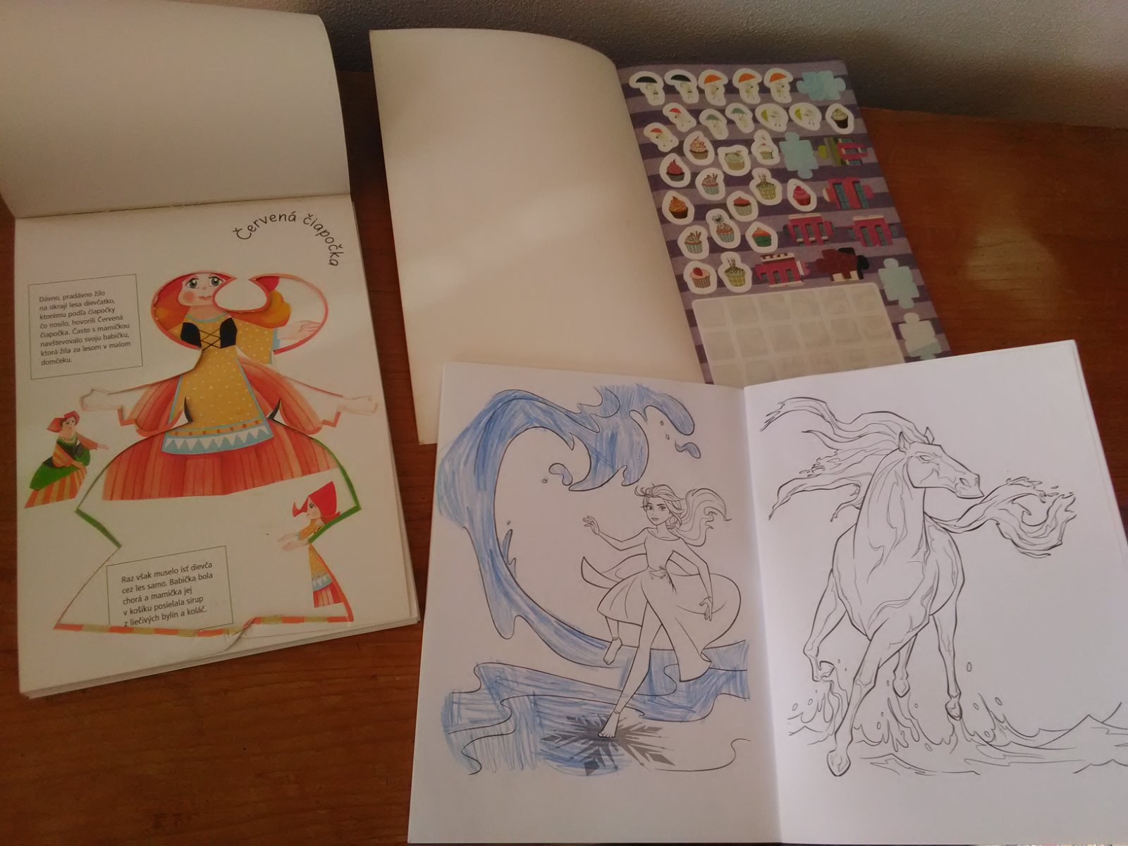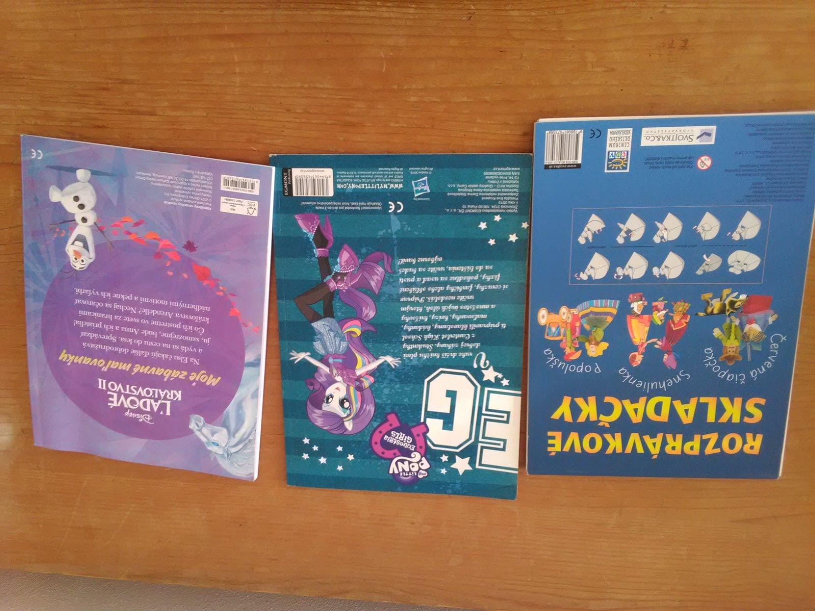 3krat použitá knižka. Každá použitá čiastočne v jednej chýba jedna papierová postavička, v druhej jedna stránka pocarbana v omaľovánke ostatné nepoužité a v tretej knižke zopár aktivít urobených väčšinou ceruzkou. Cena 0,5 € za knižku spolu 1,50€..