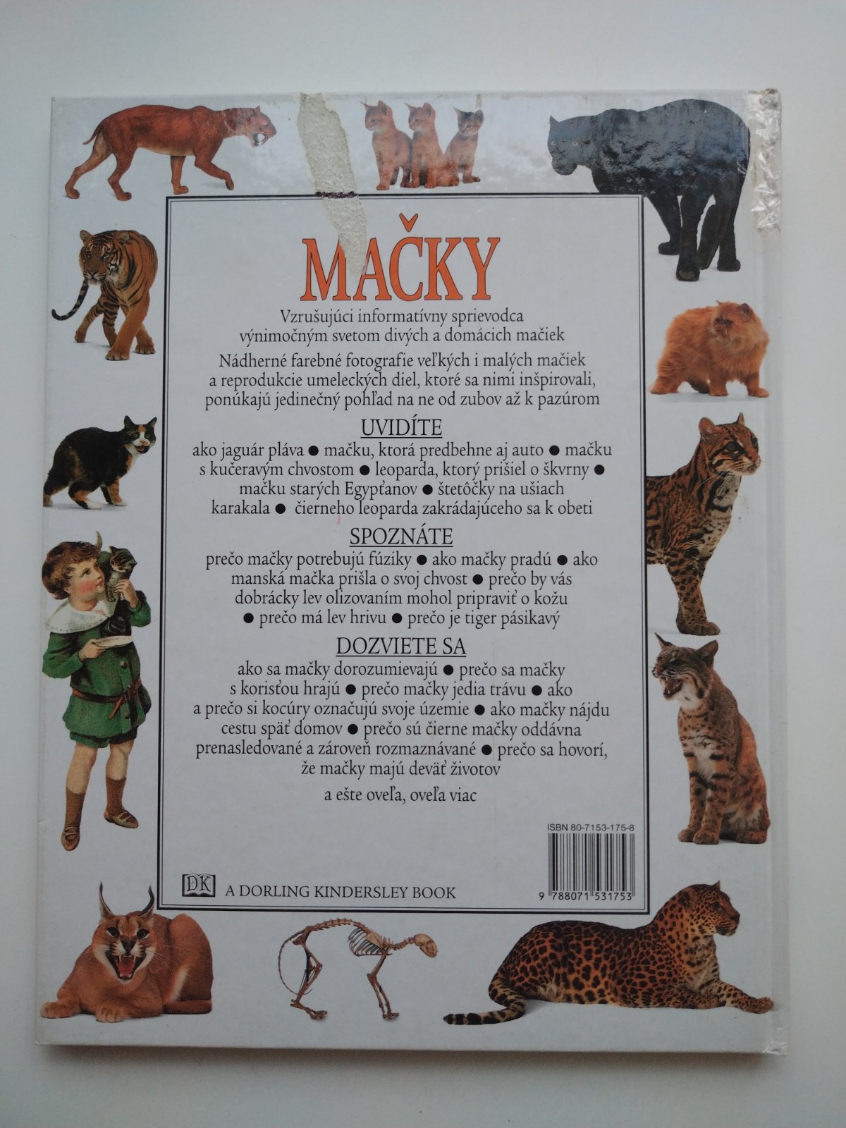 Kniha podrobne mapuje svet mačkovitých šeliem od domácich mačiek až po levy a tigre. Rozoberá ich biológiu, správanie, históriu domestikácie a postavenie v mýtoch a umení.