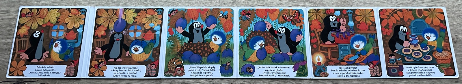 Zafúkalo, zafičalo a bola tu jeseň. Na jeseň zo stromov nepadá len lístie – keď máte domček pod slivkou, padajú vám na domček aj slivky. Keď vletela Krtkovi do krtiny najskôr jedna, potom druhá a ešte ďalšia, začal Krtek premýšľať, čo si s takou nádielkou počne. Čo je najlepšie zo sliviek? Predsa slivkový lekvár! A čo z lekváru? Lekvárové koláče! Ako rozhodli, tak urobili. Krtko so sýkorkou navarili lekvár, napiekli koláče, ale to dá rozum, že ich nezjedli sami.