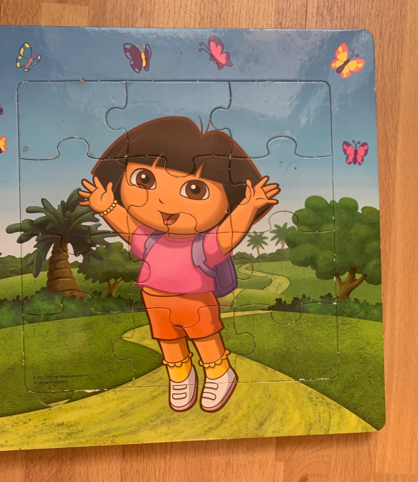 Kniha obsahuje 5 puzzle s Dorou a text.