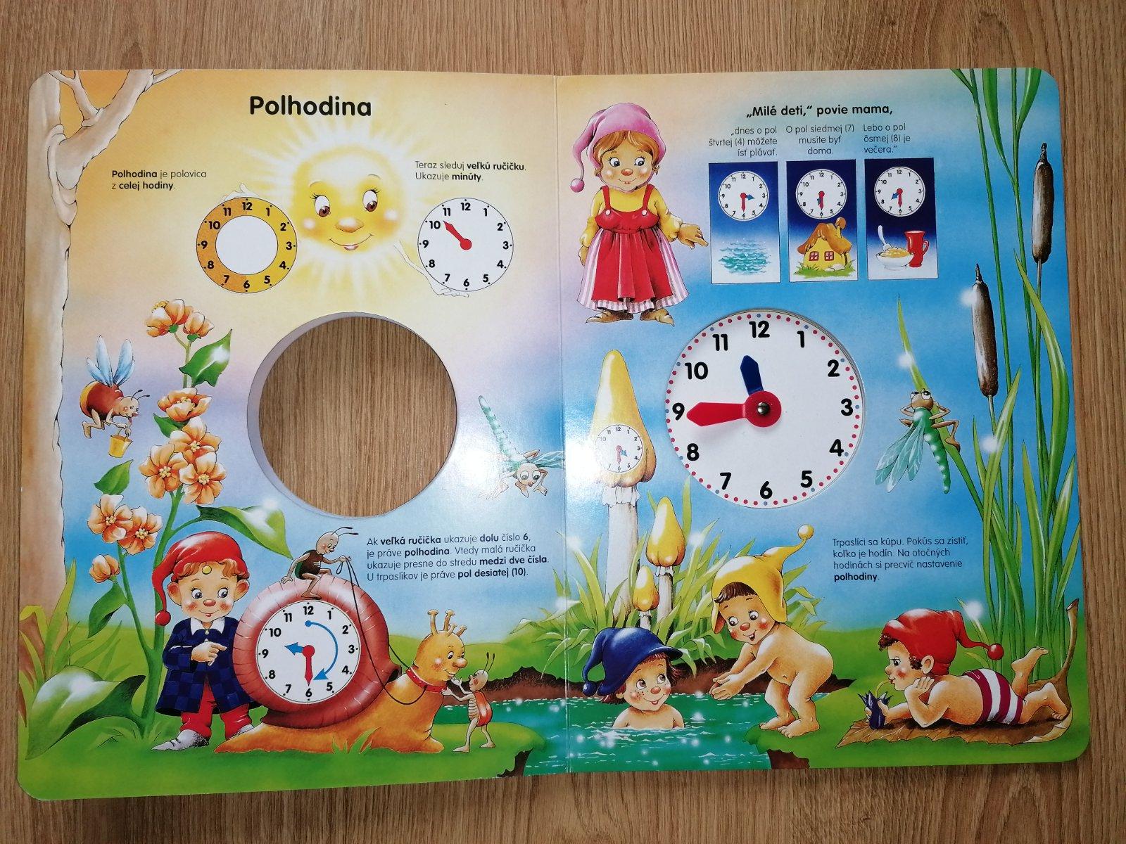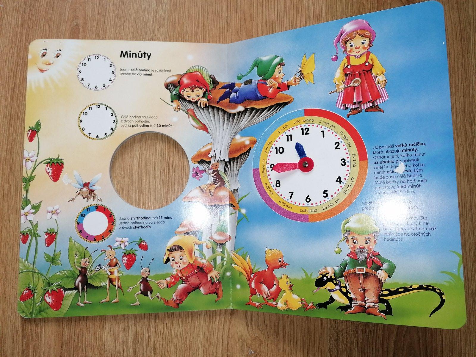 Obrázky zo života trpaslíkov pomôžu deťom pochopiť plynutie času. Jednoduché texty a nádherné ilustrácie vzbudzujú zvedavosť detí a podporujú poznávanie hodín. Je to cvičebnica- detičky posúvajú hodinovým ručičkami a pomáhajú trpaslíkov.