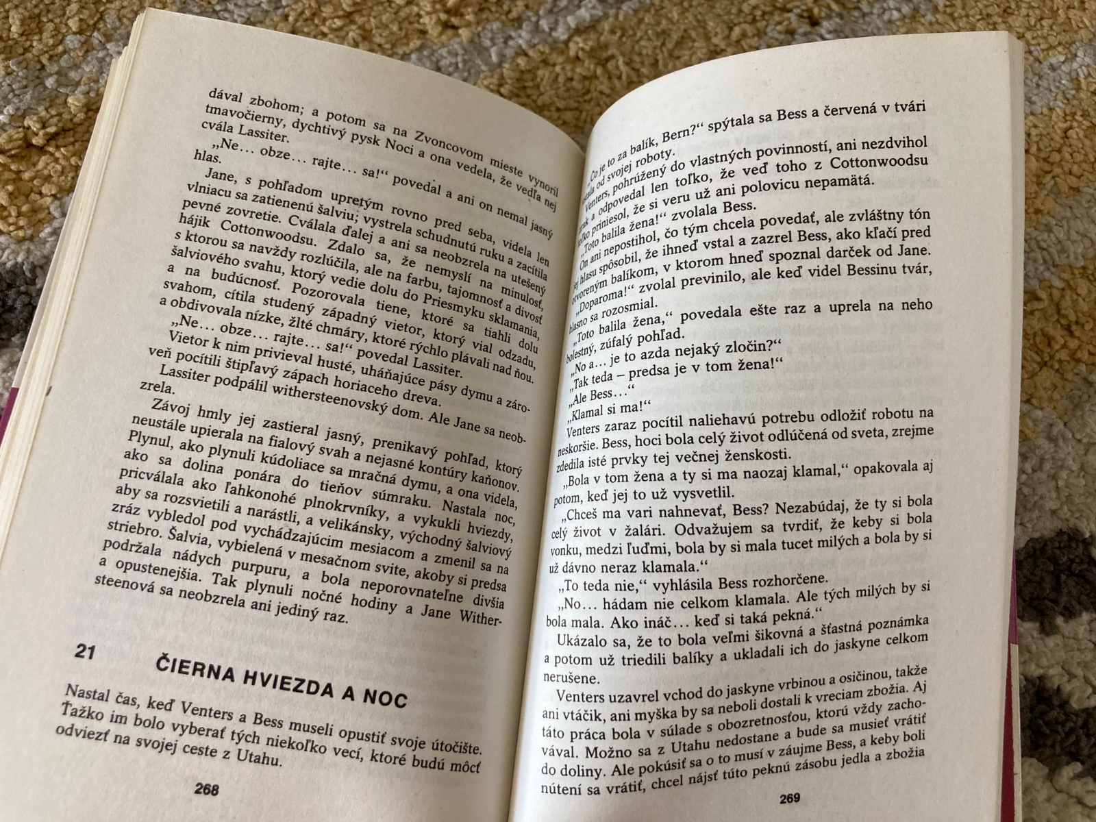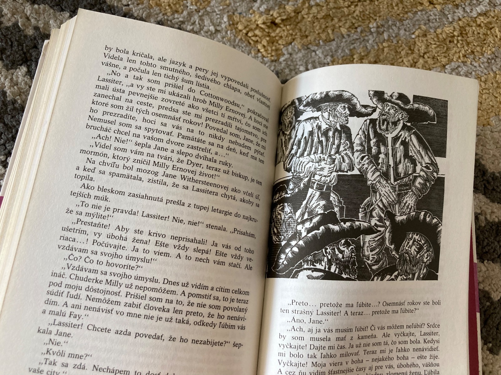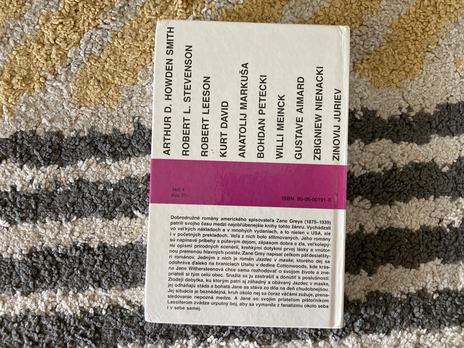 📌Dej románu sa odohráva ďaleko na hraniciach Utahu v dedine Cottonwoods, kde krásna Jane Withersteenová chce sama rozhodovať o svojom živote a znepriatelí si tým celú obec. Snažia sa ju zastrašiť a donútiť k poslušnosti. Zlodeji dobytka, ku ktorým patria aj záhadný a obávaný jazdec v maske, jej odháňajú stáda a bohatá Jane sa stáva zo dňa na deň chudobnejšou. Musí teda bojovať a vymyslieť niečo, aby sa vymanila z obludnej moci fanatizmu.