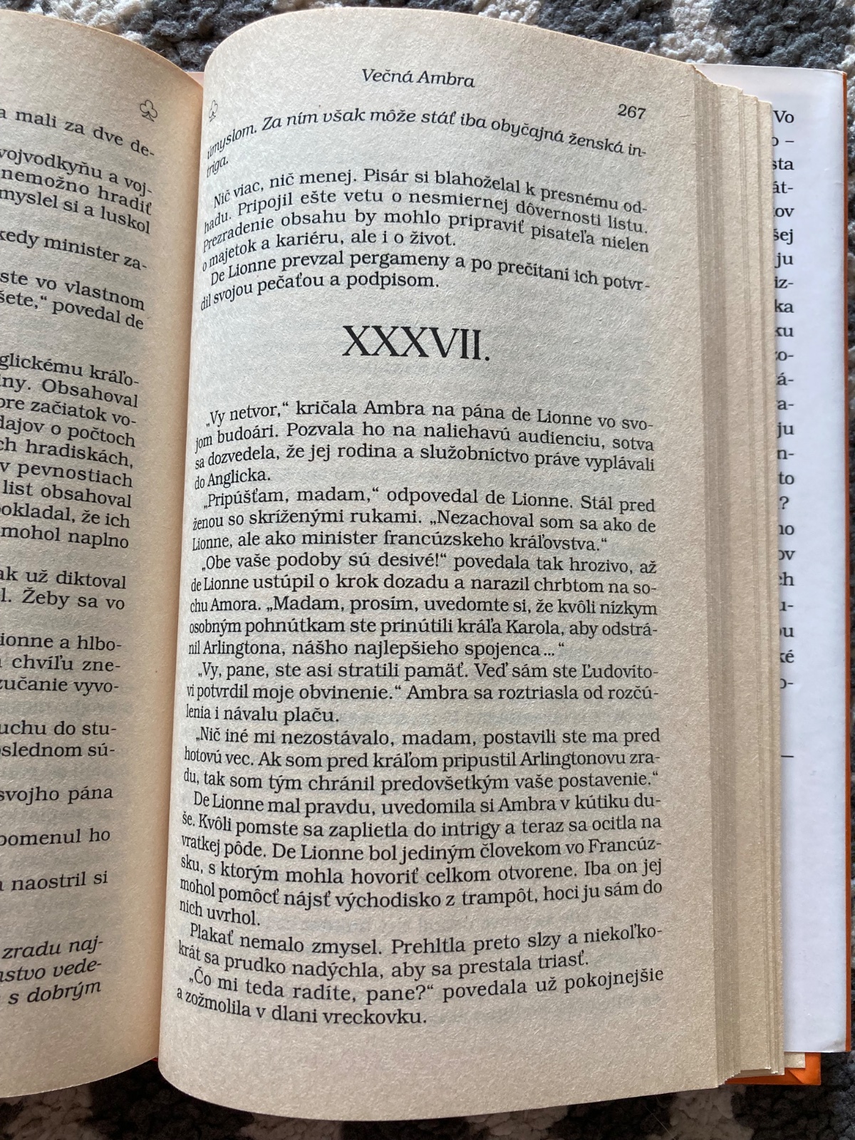 Pokračování začíná v době, kdy se hrdinka vyprovokovaná zlomyslnou intrikou vydává na riskantní cestu za svou celoživotní láskou. Při dobrodružné plavbě do Ameriky je její loď zajata piráty a po mnoha měsících se dostane se skupinou zajatých francouzských šlechticů do Paříže, ke dvoru Ludvíka XIV. Jako králova milenka se stane nástrojem ovlivňování Ludvíka při nastávající válce proti Nizozemí ve prospěch určité části francouzské šlechty a jejích záměrů. Román oplývá politickými intrikami a milostnými dobrodružstvími, jimiž se autorka snaží navázat na dílo své slavné předchůdkyně.