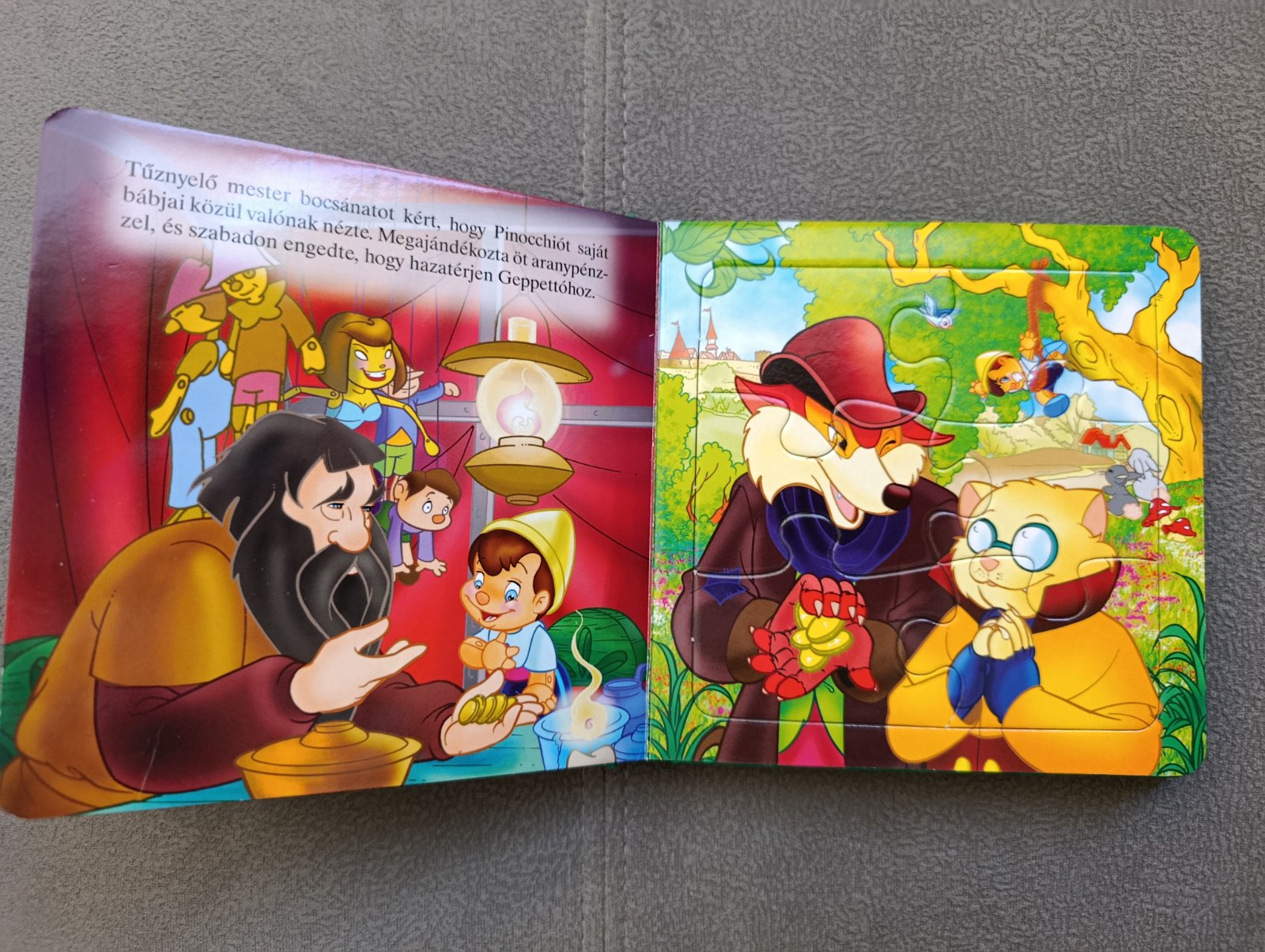 Teddy mackó a hóember 93 strán 6Eur, Micimackó első napja az iskolában 32 strán 5 Eur, Macskák 32 strán 5 Eur, Pinocchio puzzle kniha,poškodenie na zadnej strane 3 Eur