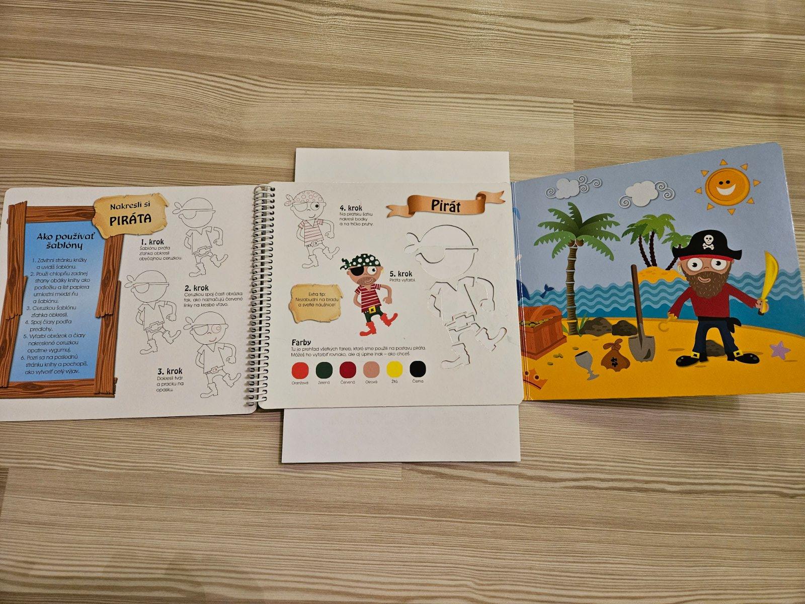 Knižky pre rozvoj zrakového vnímania a jemnej motoriky. My sme knižky používali hlavne na trénovanie tupozrakého oka. Jedna knižka (tá zelená o krtkovi) je v češtine, ale keďže je určená pre škôlkárov/predškolákov, zadanie číta rodič/dospelý, má 64 strán. Piráti majú 7 strán šablón a Nakresli cestičku má 16 strán - tu sme používali fixku, čo sa dá zotrieť, takže nepoznať ryhy. Zošity sú ako nové, len výrezy pirátov sú trošku od fixiek. V prípade záujmu písať e-mail blankagm1@gmail.com