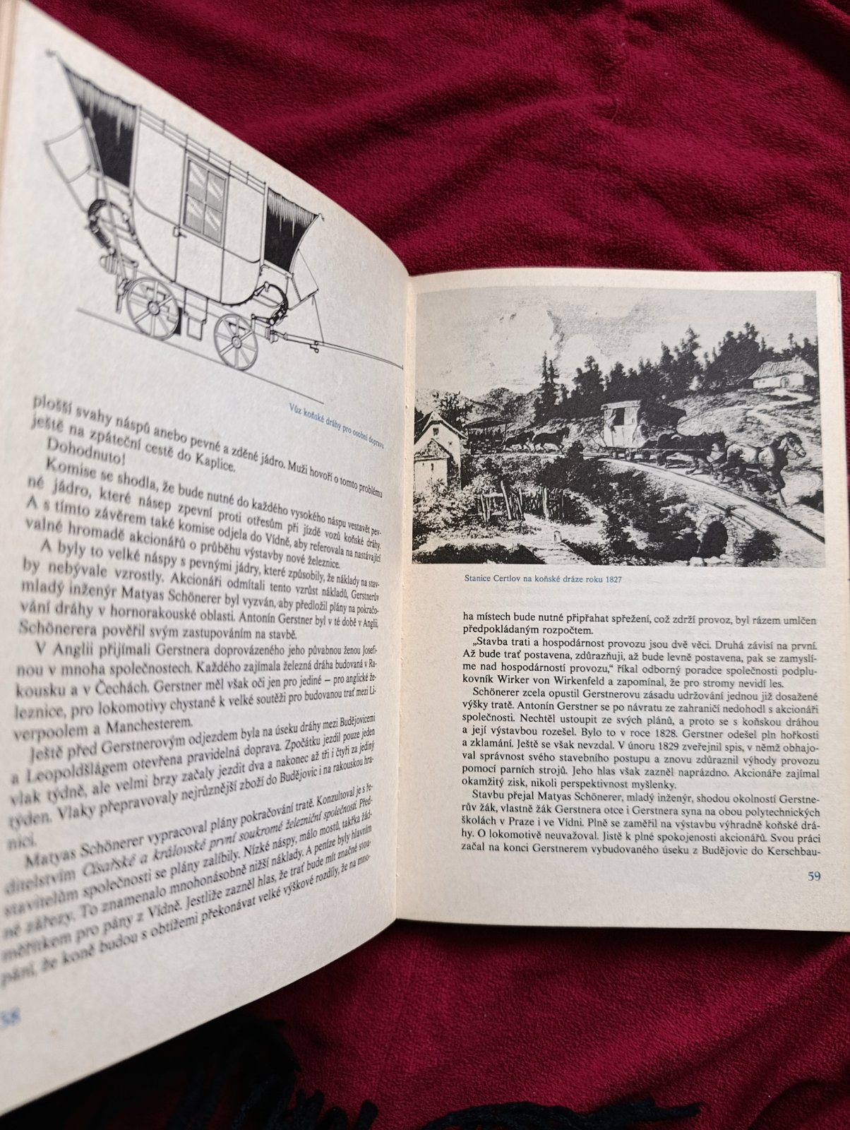 Množství dobových ilustrací a fotografií doplňuje vyprávění o vzniku a počátcích železniční dopravy. Autor líčí potíže, s nimiž se setkávaly první projekty budování železnic, a připomíná vynálezce a konstruktéry parních lokomotiv. Seznamuje s výstavbou koněspřežky Budějovice-Linec, s budováním železných drah v Rakousku a v ostatních zemích.