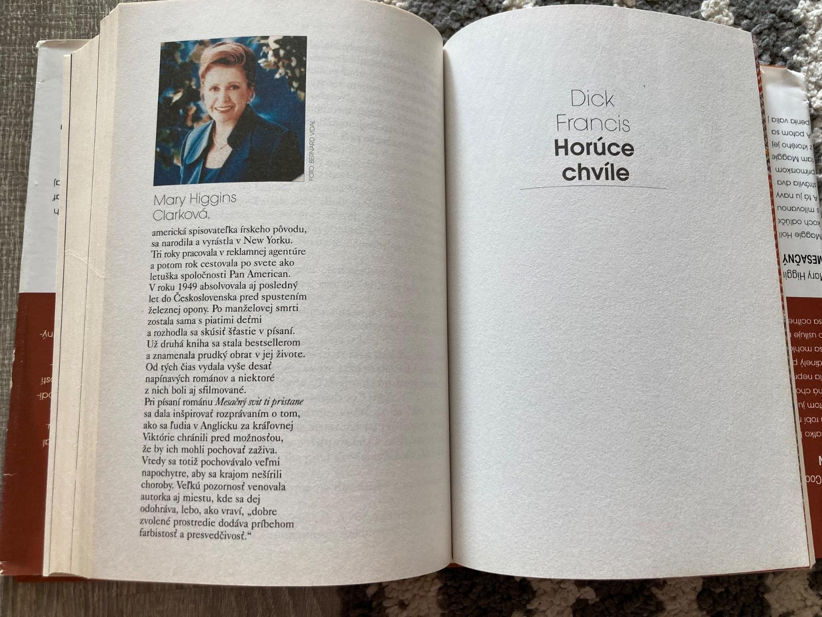 HORÚCE CHVÍLE /Francis Dick/ - Alexander najradšej trávi čas na samote na horách. Ale problémy si ho aj tak nájdu. Náhle ochorenie nevlastného otca, kôň, ktorého treba skryť, rodinné dedičstvo, po ktorom pátra nie iba jeden pár chamtivých rúk.....