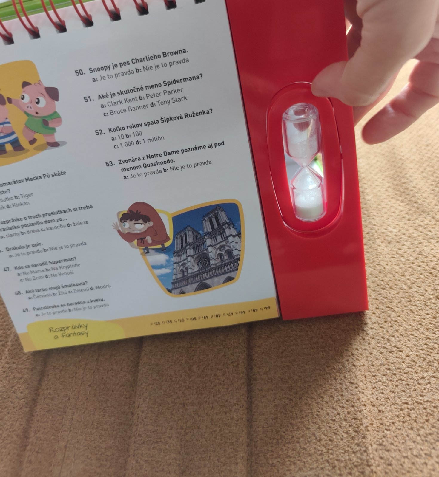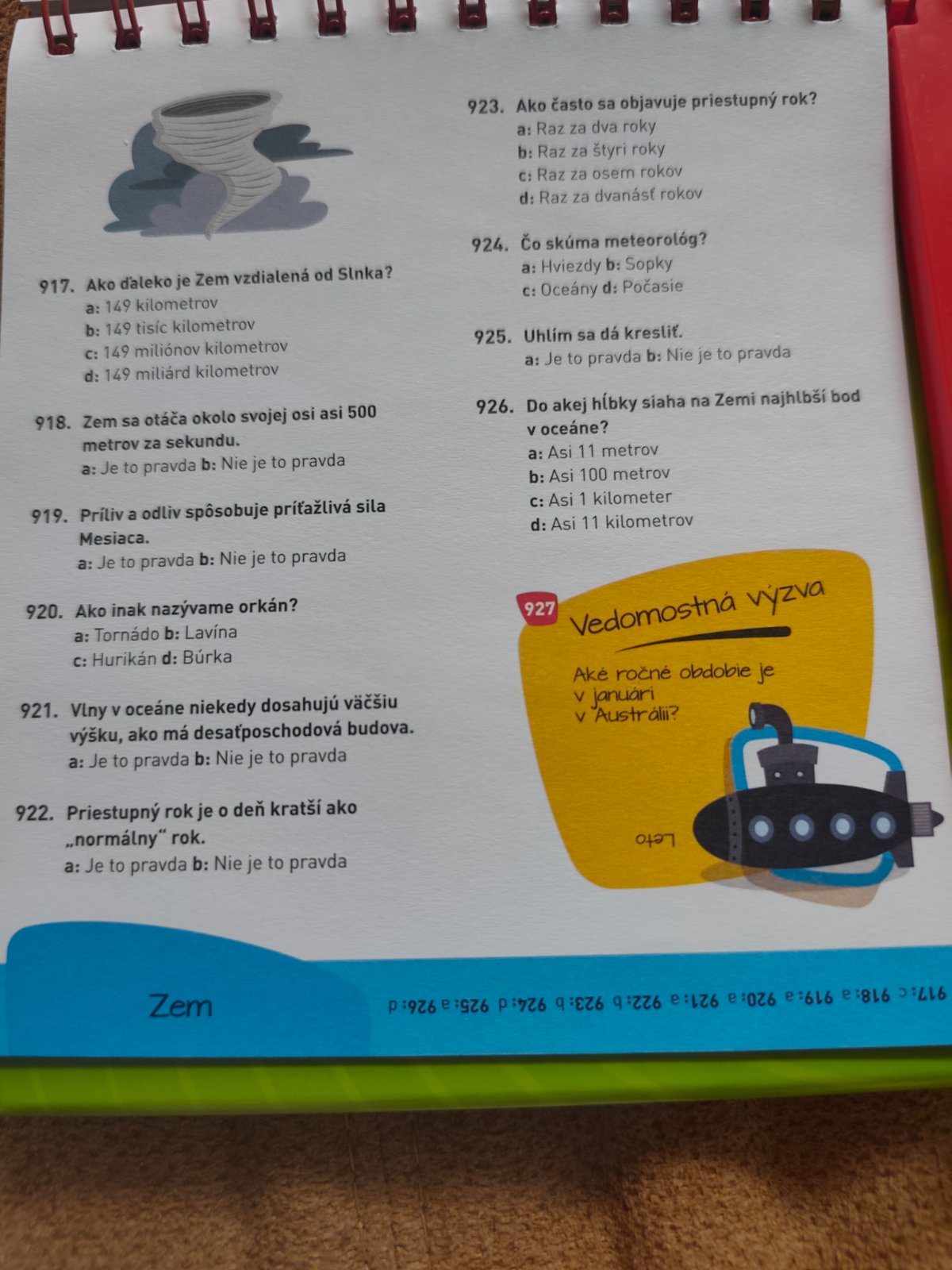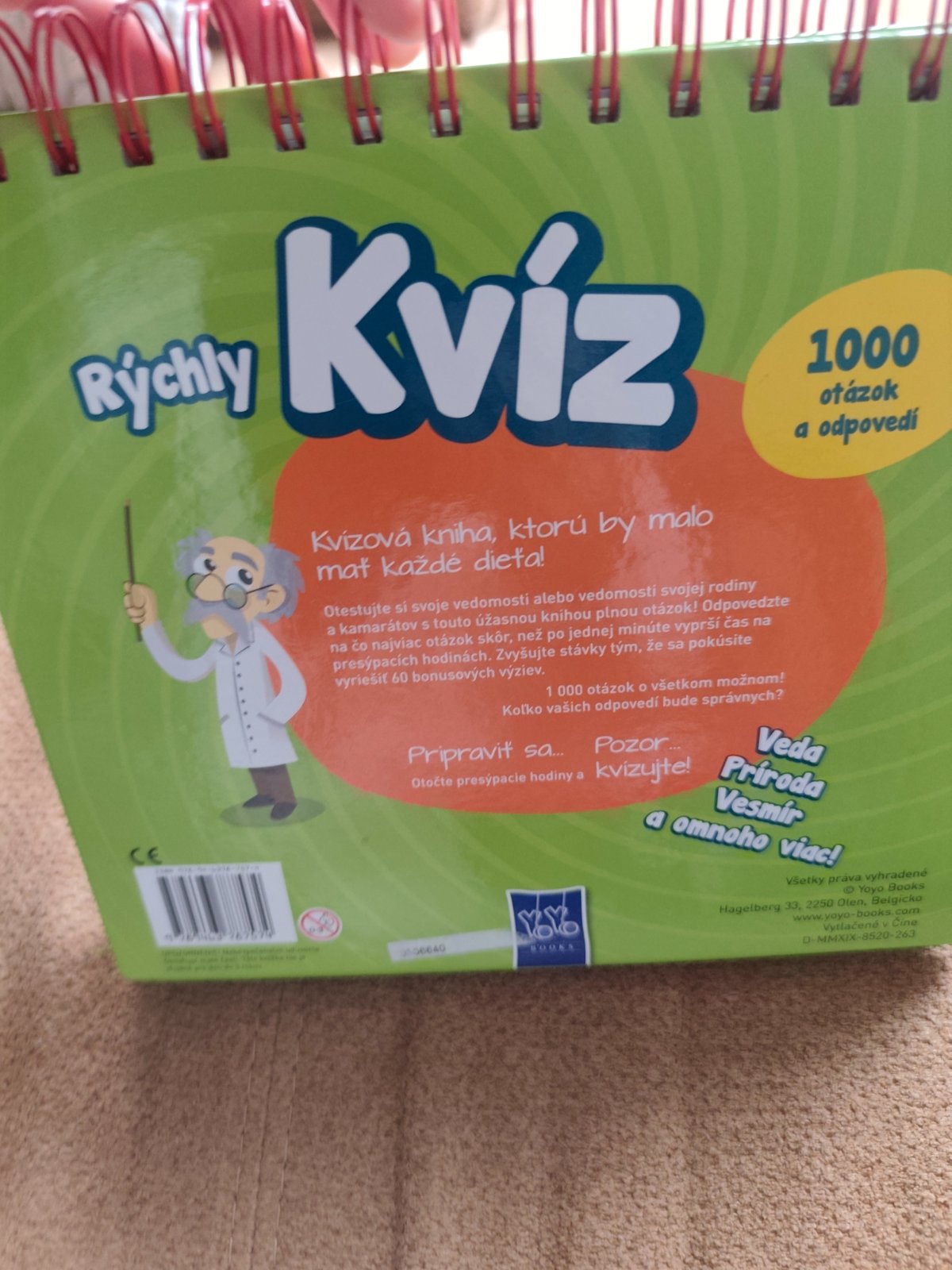Kniha kvíz o prírode vesmíre a vede. Súčasťou sú presýpacie hodiny, sa sa aj pekné postaviť ako kalendár, viď foto, na každej strane sú uvedené aj správne odpovede, ako nova