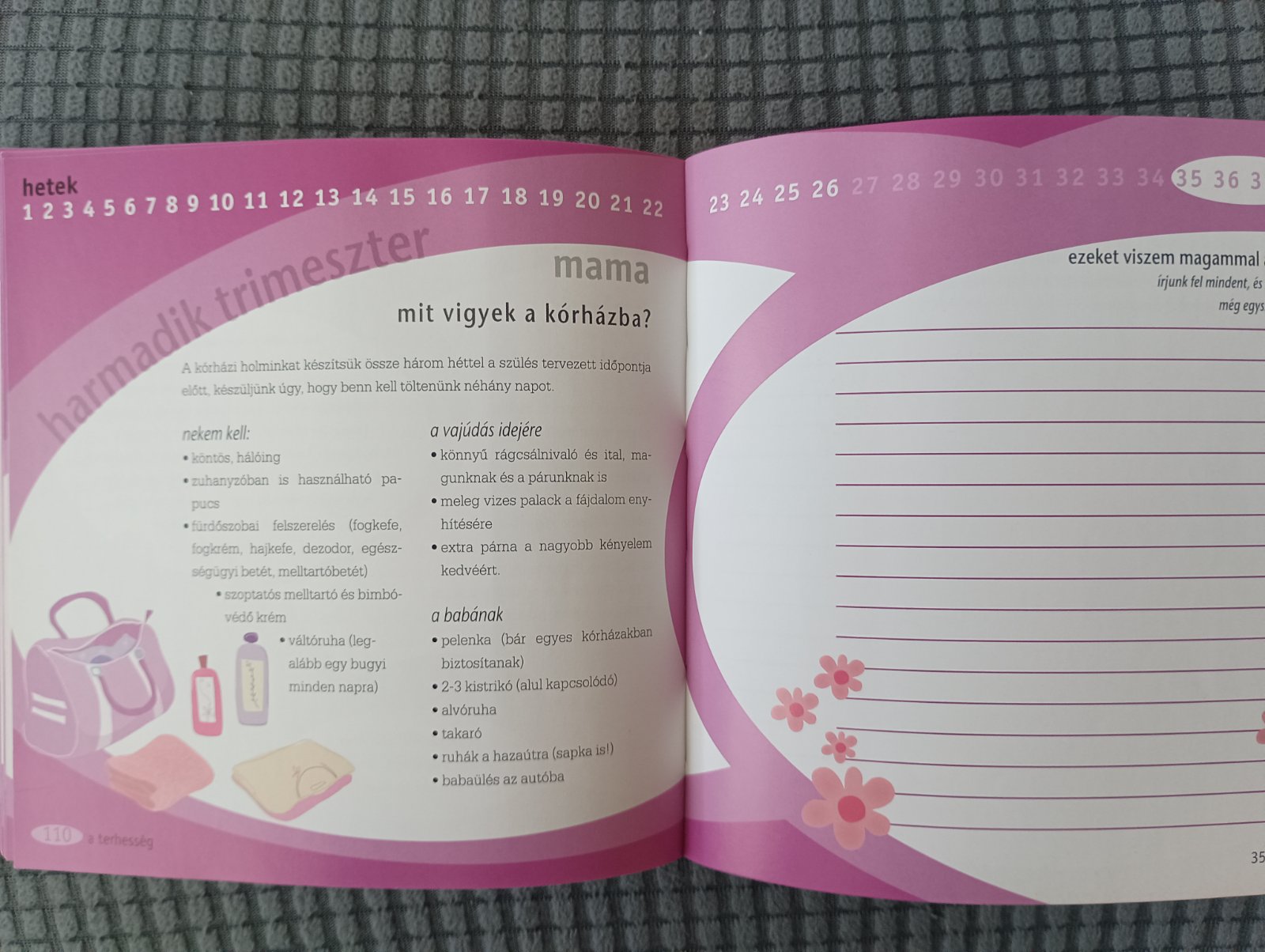 Kniha od začiatku tehotenstva až po prvé týždne po pôrode. Bežné známky používania.