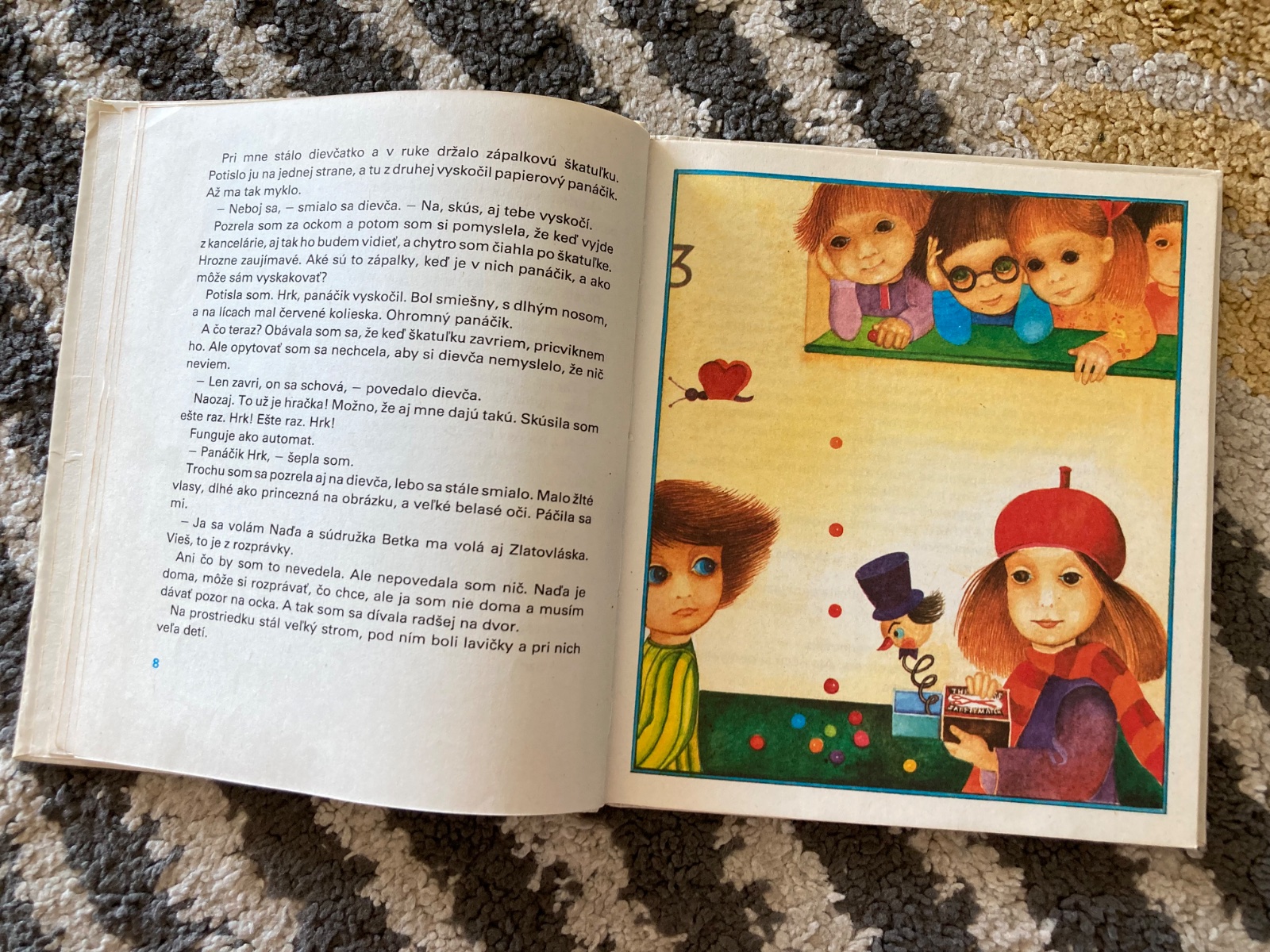 Velmi pekný stav, krásna retro knižka, zachovalá s krásnymi ilustraciami, pekné strany, má pár pečiatok z knižnice a trošku zvlnené pevné knižné dosky
