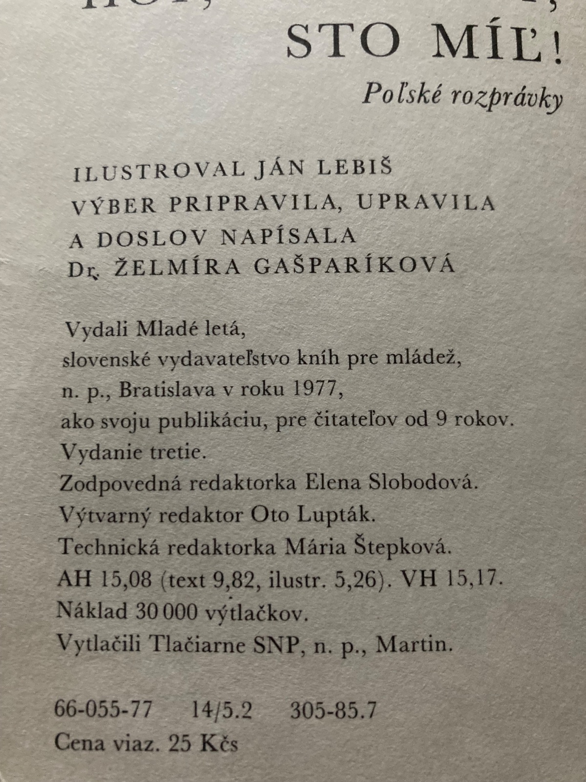 📌Poľské ľudové rozprávky. Hop, čižmičky, sto míľ...zvolal v rozprávke hrdina, čo hľadal Ružové mesto, a hneď bol tak ďaleko, ako si rozkázal. A vy, keď sa do rozprávok začítate, akoby ste tiež v míľových čižmičkách skočili ďaleko, do sveta neskutočného, vybájeného, o ktorom si rozpráva poľský ľud. Rozpráva aj o drakoch, čo škodia ľuďom a odoberú im vodu a chlieb, o čarodejniciach a zakliatych zámkoch, o mocnom Valibukovi a Valivrchovi, o čarodejnom obrúsku, čo sa nám rozloží, o zlej macoche a dobrej pastorkyni a o mnohom inom, o čom ste už čítali aj v našich slovenských rozprávkach.