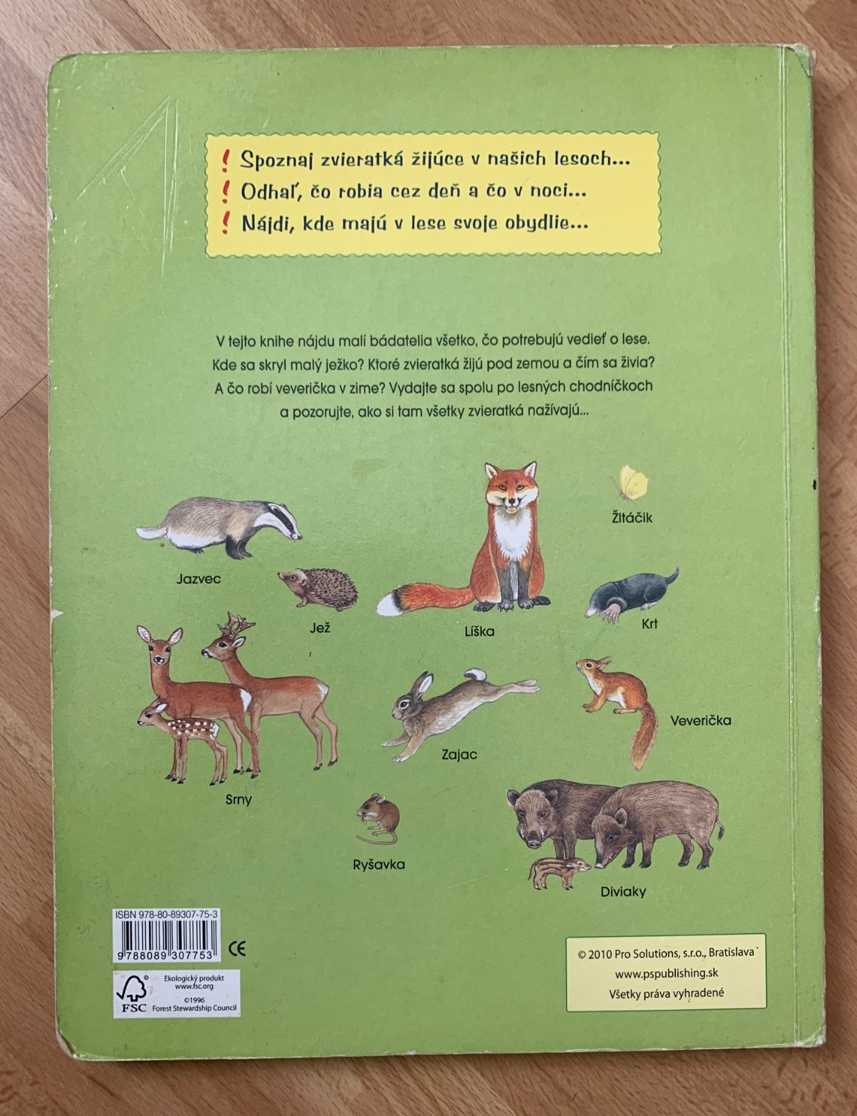V tejto knihe nájdu malí bádatelia všetko, čo potrebujú vedieť o lese. Kde sa skryl malý ježko? Ktoré zvieratká žijú pod zemou a čím sa živia? A ktoré zvieratká v noci vstávajú a cez deň spia? Vydaj sa po lesných chodníčkoch a pozoruj, ako si tam všetky zvieratká celý rok spolu nažívajú…