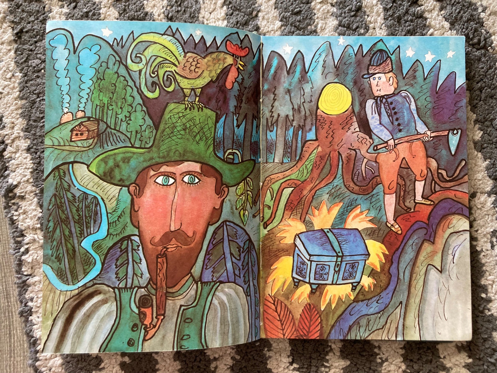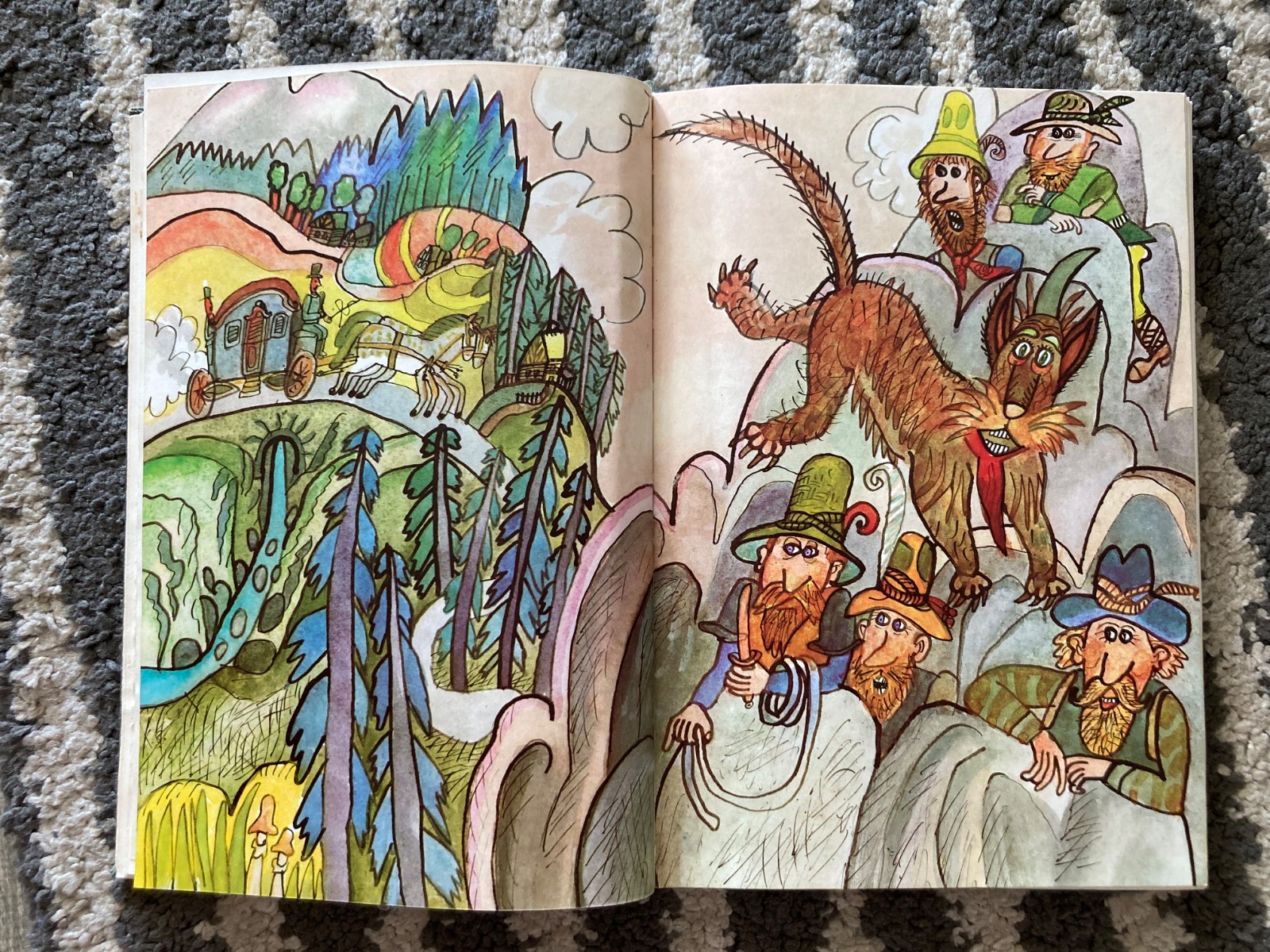 Pekný stav, krásna retro knižka, prvé vydanie, s krasnymi ilustraciami, na stranách sú fliačky, má pečiatky z knižnice, vpredu a vzadu lepená páskou, má opotrebovanie pevných knižných dosiek a chýba prebal