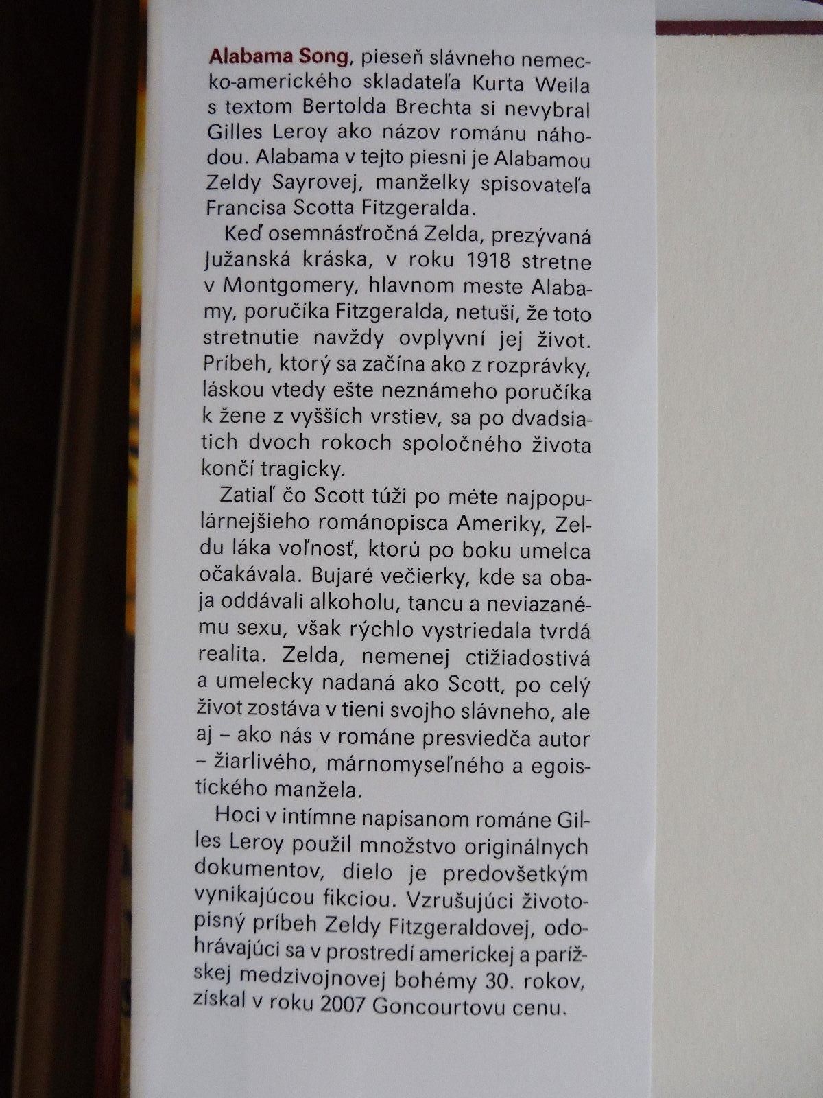 Predám 1x prečítanú knihu o Zelde Fitzgeraldovej - Alabama Song... Cena je bez poštovného, v KE možný osobný odber.
