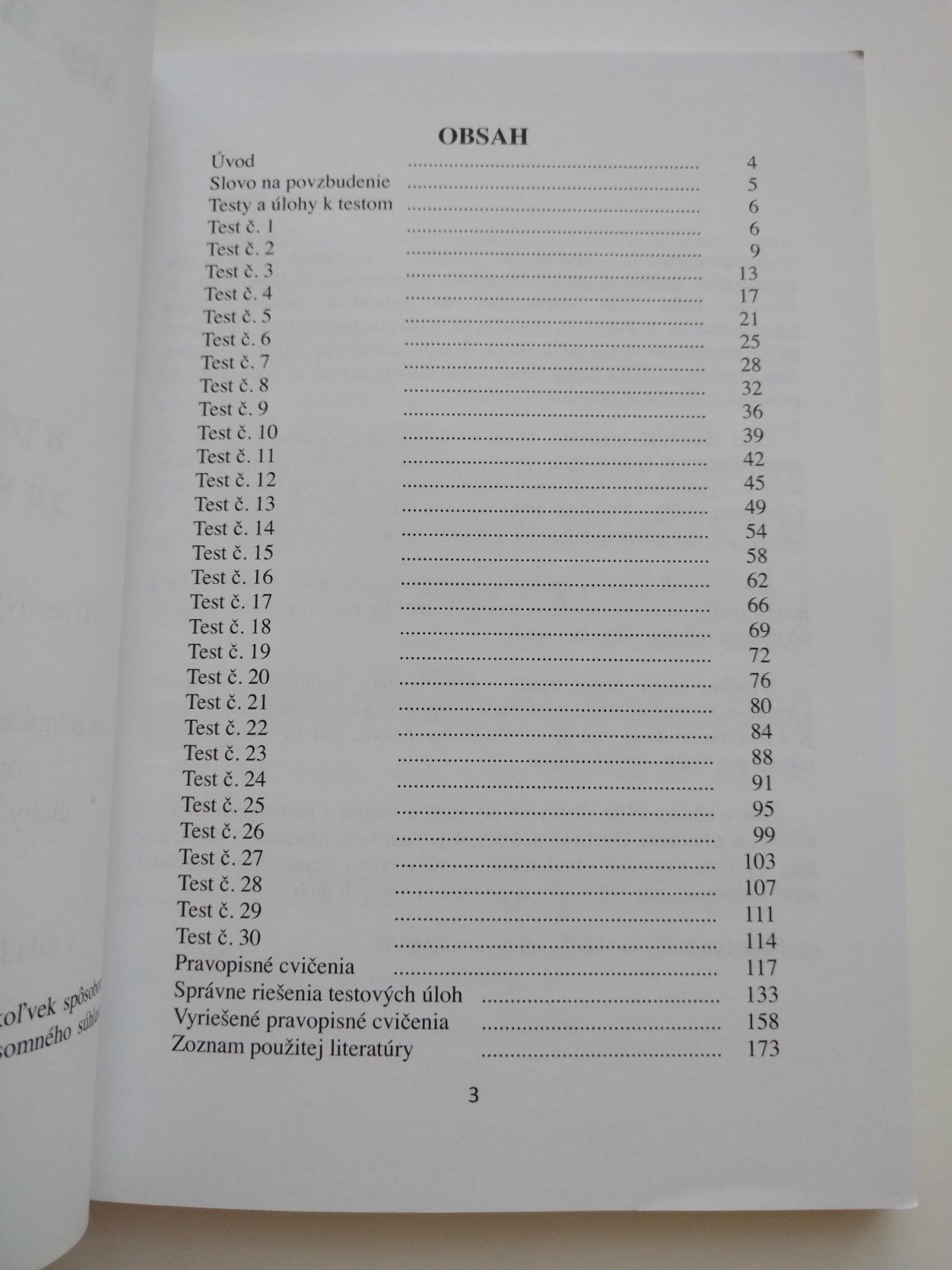 Učebná pomôcka s názvom Testy a pravopisné cvičenia zo slovenského jazyka, táto publikácia je určená na precvičovanie gramatiky a pravopisu a obsahuje 600 testových úloh a 60 pravopisných cvičení. Kniha je obľúbená pre svoju prehľadnosť a praktické zameranie na opakovanie učiva základnej školy.