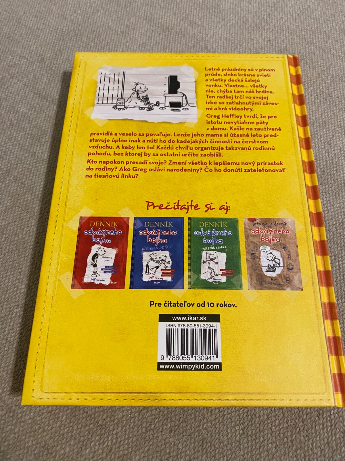 Greg Heffley tvrdí, že pre istotu nevytiahne päty z domu. Kašle na zaužívané pravidlá a veselo sa povaľuje. Lenže jeho mama si úžasné leto predstavuje úplne inak a núti ho do kadejakých činností na čerstvom vzduchu. A keby len to! Každú chvíľu organizuje takzvanú rodinnú pohodu, bez ktorej by sa ostatní určite zaobišli.
