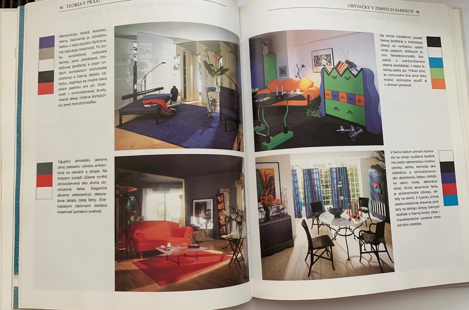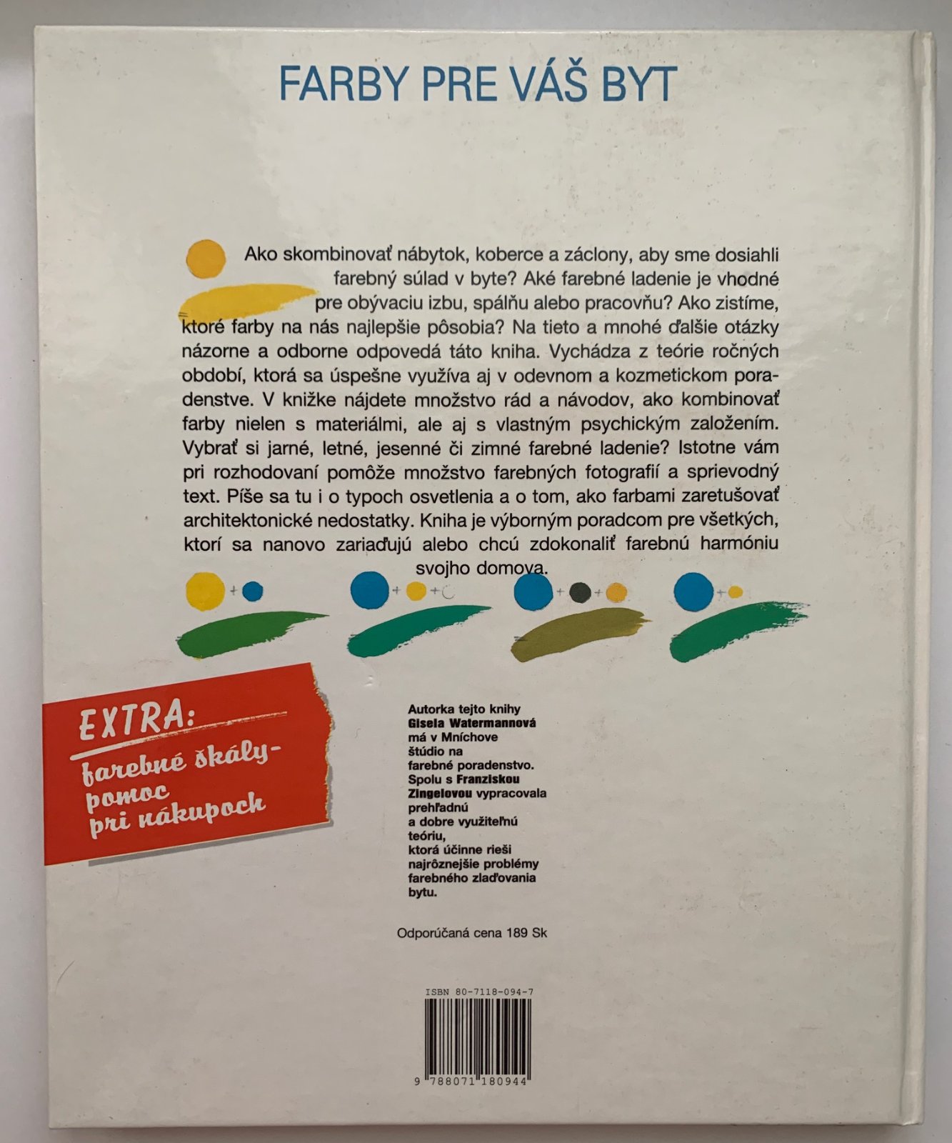 Ako skombinovať nábytok, koberce a záclony, aby sme dosiahli farebný súlad v byte? Aké farebné ladenie je vhodné pre obývaciu izbu, spálňu alebo pracovňu? Ako zistíme, ktoré farby na nás najlepšie pôsobia? Na tieto a mnohé otázky názorne a odborne odpovedá táto kniha. Vychádza z teórie ročných období, ktorá sa úspešne využíva aj v odevnom a kozmickom poradenstve. V knižke nájdete množstvo rád a návodov, ako kombinovať farby nielen s materiálmi, ale aj s vlastným psychickým založením. Vybrať si jarné, letné, jesenné či zimné farebné ladenie? Istotne vám pri rozhodovaní pomôže množstvo farebných fotografií a sprievodný text. Píše sa tu o typoch osvetlenia a o tom, ako farbami zaretušovať architektonické nedostatky. Kniha je výborným poradcom pre všetkých, ktorí sa nanovo zariaďujú alebo chcú zdokonaliť farebnú harmóniu svojho domova.