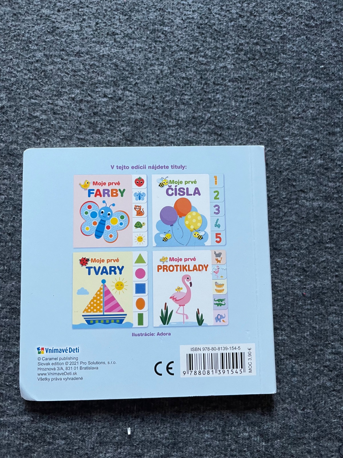 Minimálne prezerana tvrda knižka jedným dieťaťom. Veľmi dobrý stav, len jeden rožtek sa trošku krčí vpravo dolu. Inak ako nová.