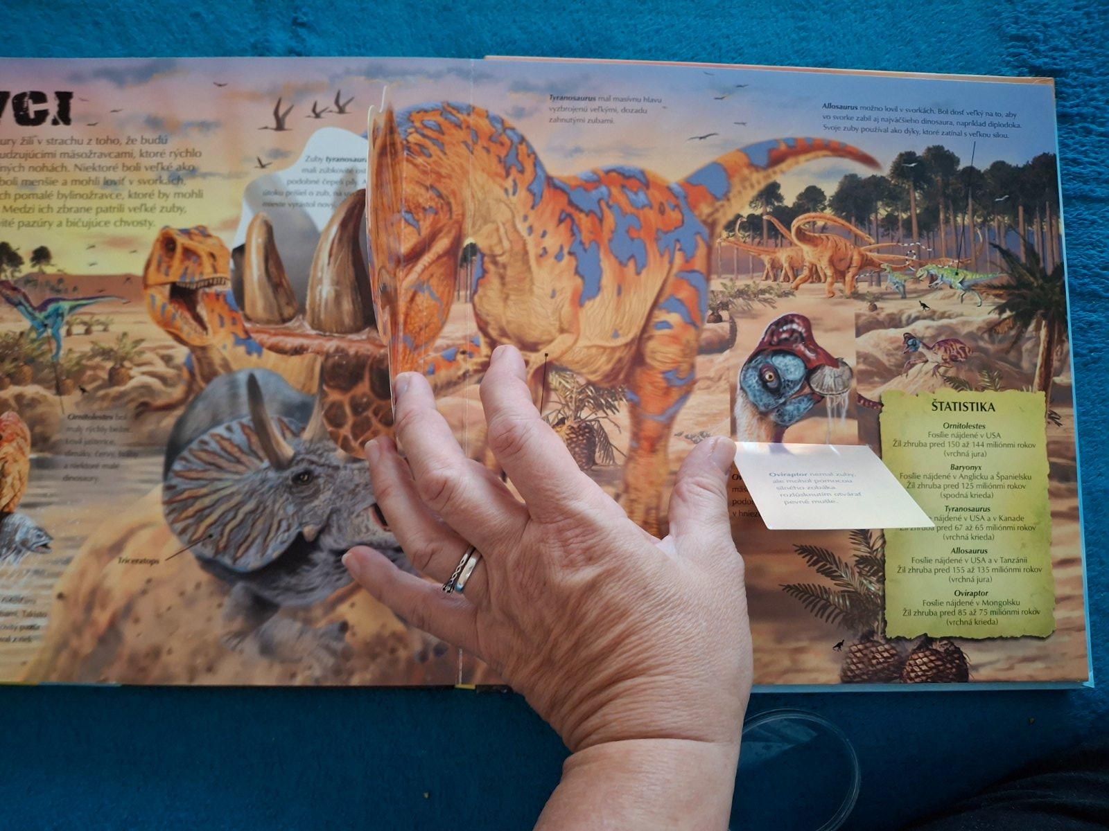 Super kniha pre milovníkov dinosaurov. Výborný stav .vypredaný titul.Vyborny stav knihy a, teda na jednu chybu na ktorú má upozornili až deti..ja som si to vôbec nevšimla...jedno odkrývacie okienko chýba. Doplnené foto - posledné