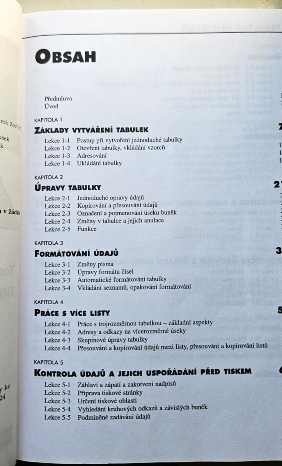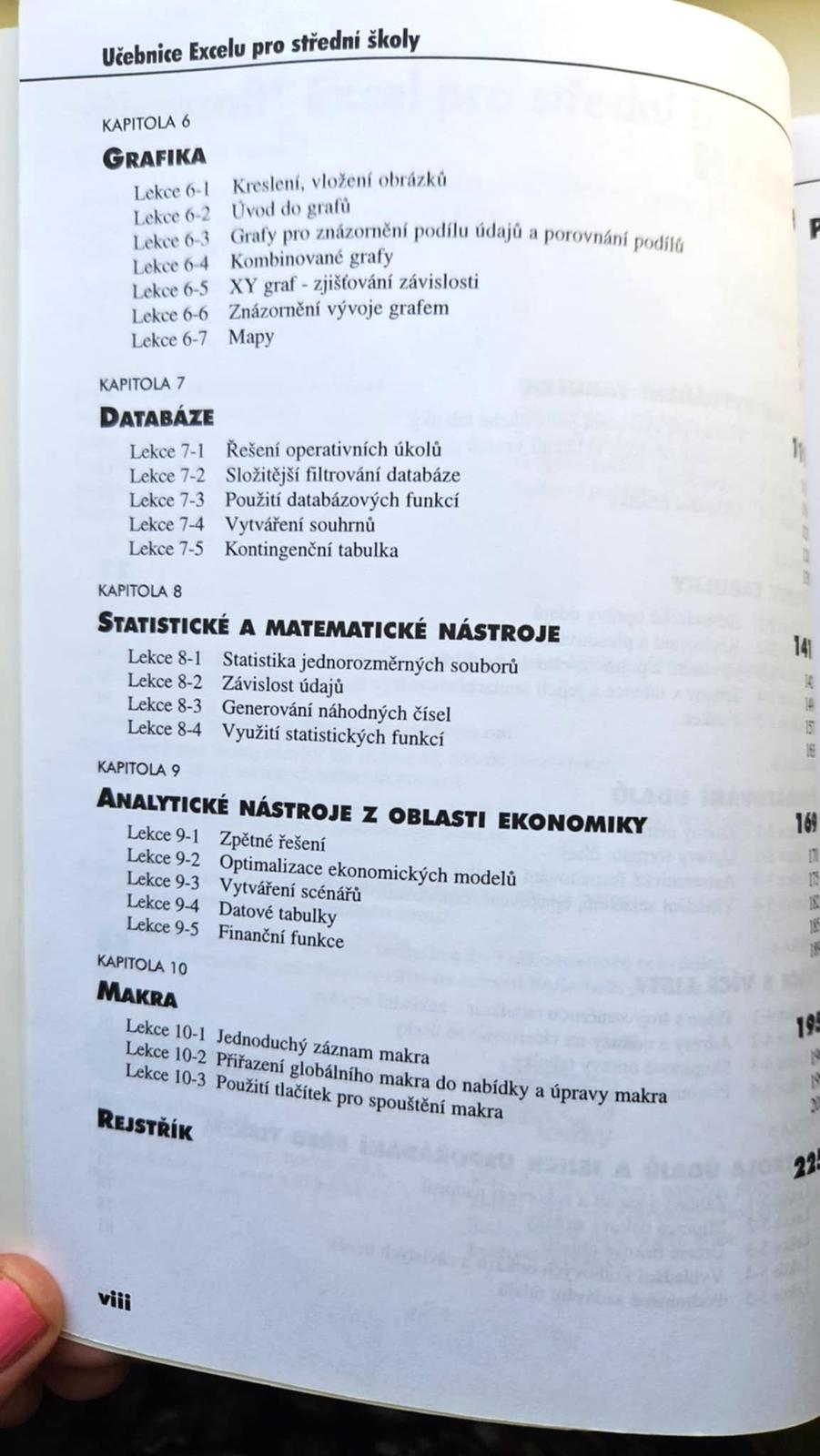 Kniha predkládá ucelený prehled základních možností práce s Excelem od úplných zacátku práce se souborem, základu vytvárení a úprav tabulek, formátování údaju, práce s více listy, pres vkládání grafu, jejich úpravy, až po složitejší záležitosti procházení a práce s databázemi, statistické, matematické a ekonomické analytické nástroje a jednoduchá makra.