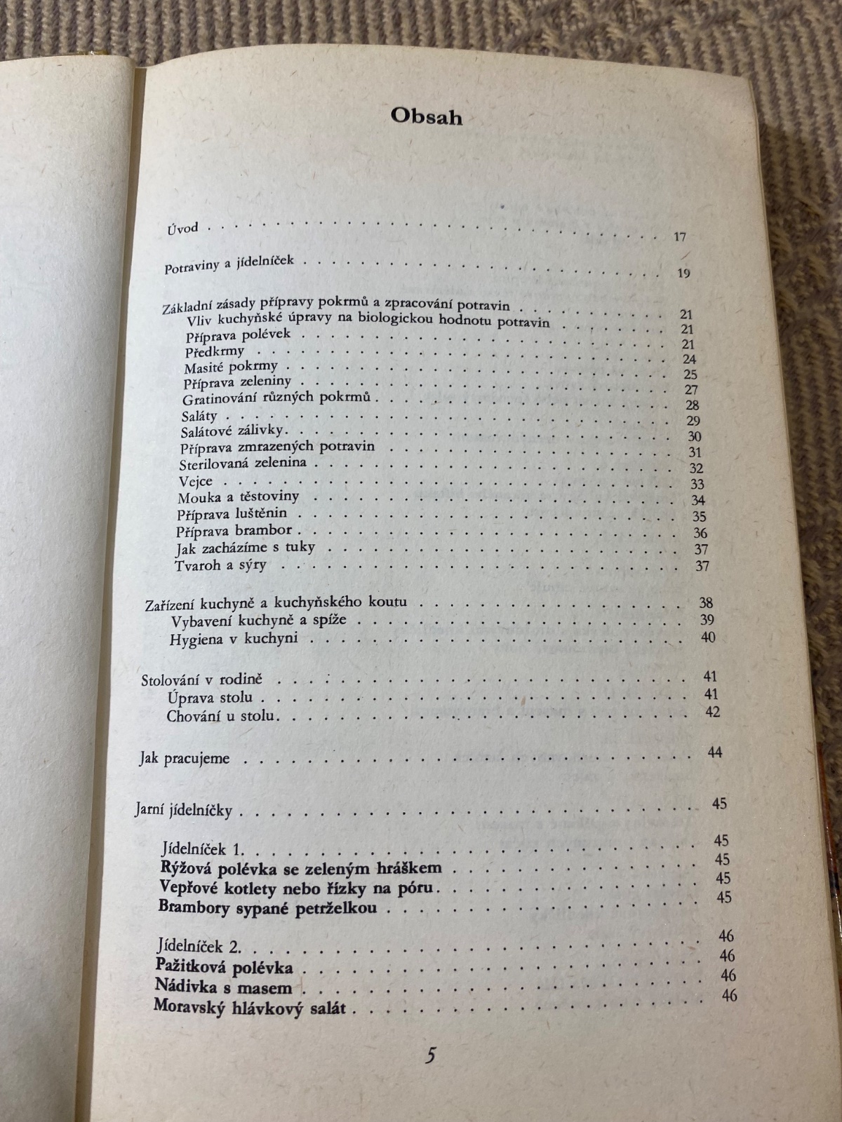 Příručka, určená k rychlé, časově nenáročné přípravě pokrmů, obsahuje jídelníčky, při jejichž sestavování brala autorka v úvahu hlavně využití sezónních potravin. V úvodních kapitolách seznamuje se základní úpravou jednotlivých druhů potravin, vybavením kuchyně, zásadami stolování a hygieny vaření. Součástí knihy jsou jídelníčky podle ročních období - Jarní, Letní, Podzimní a Zimní jídelníčky