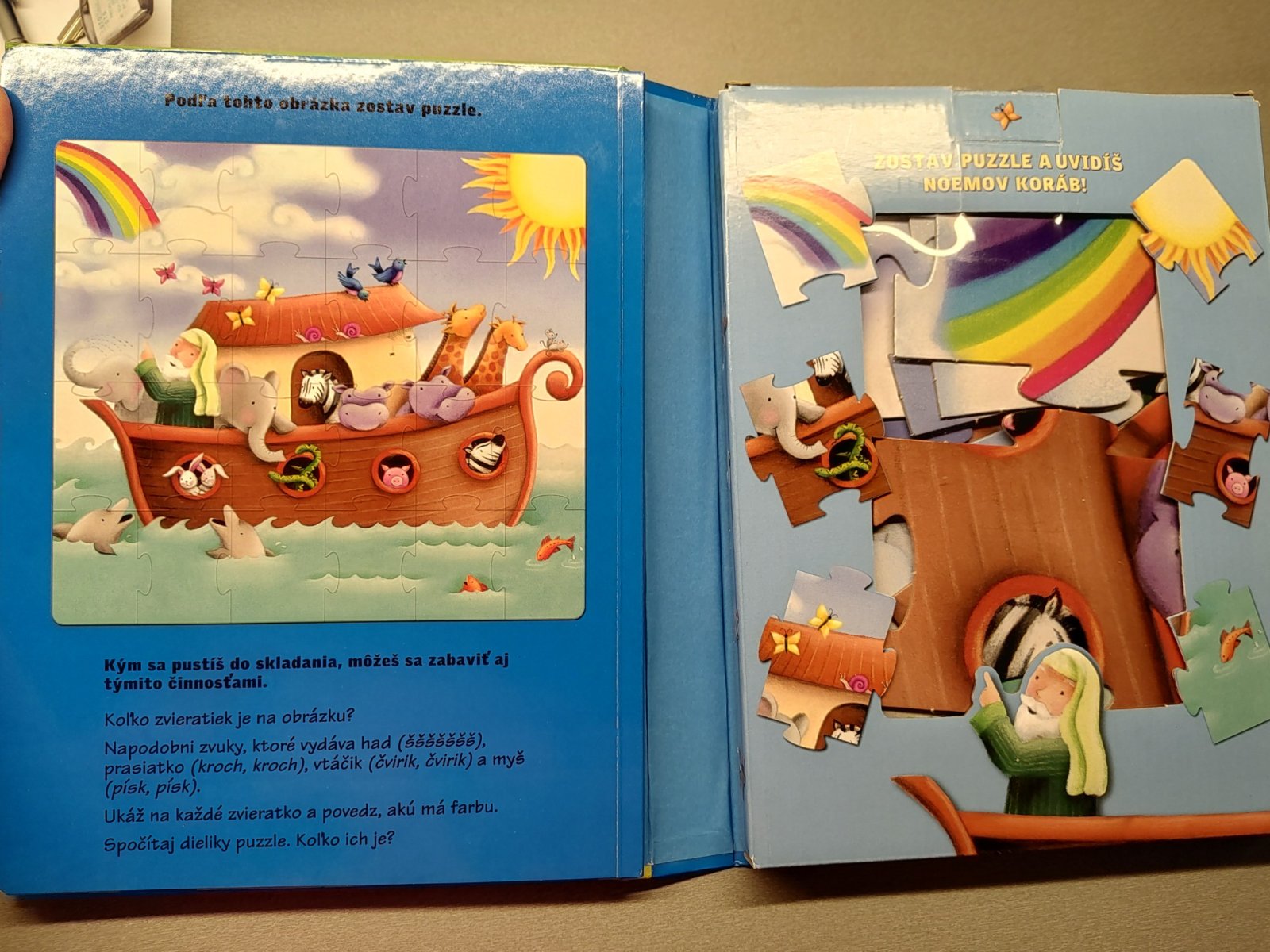 Obsahuje aj veľké puzzle Noemov koráb. Málo hraná, myslím, že sme to mali 1x rozložené. Nič nechýba, len bežné známky opotrebenia, neporušená.