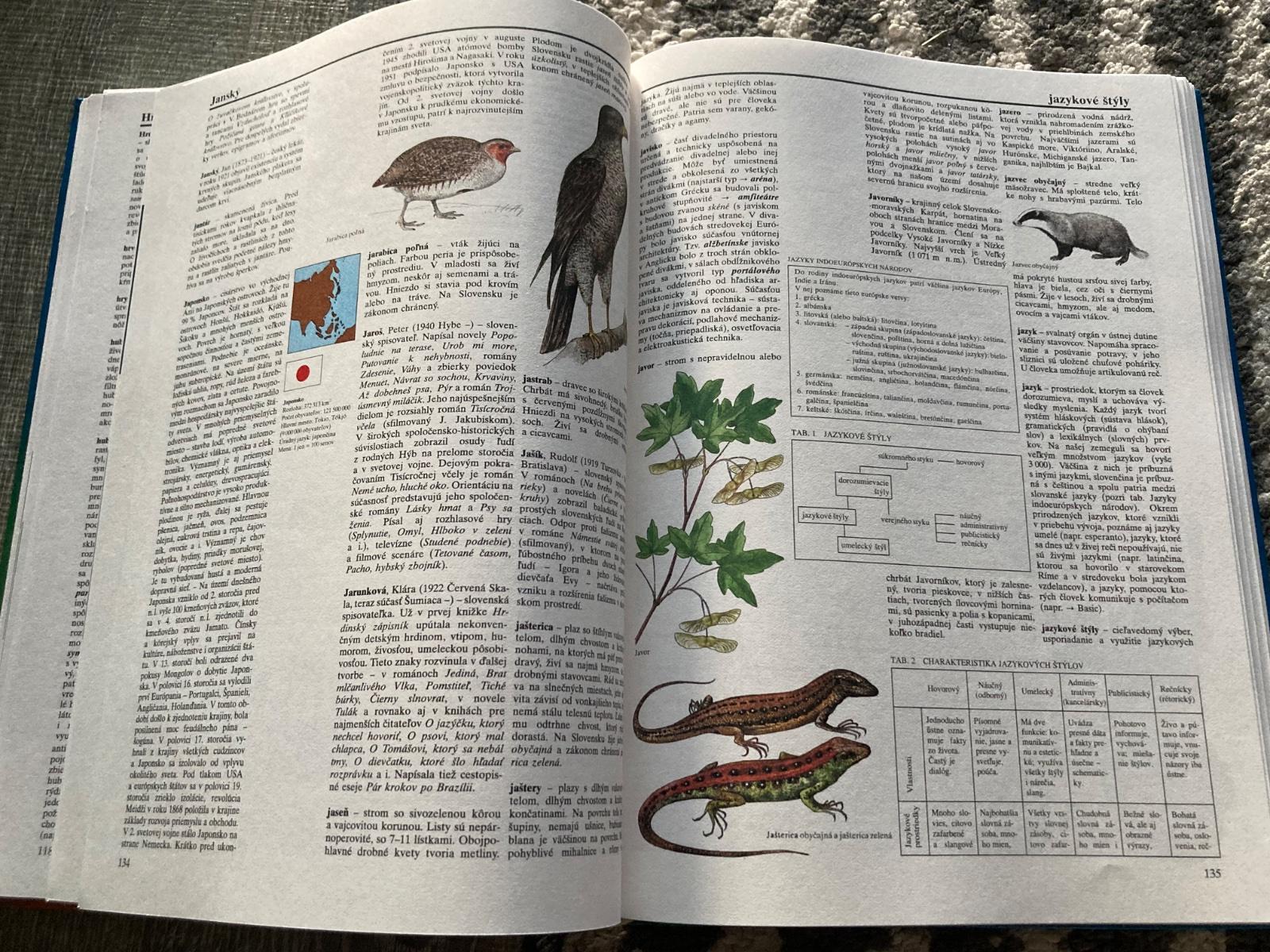 výborný stav, krásny veľký lexikón, prvé vydanie z roku 1992, s krásnymi ilustráciami, veľmi pekné strany, pekný obal, bez akýchkoľvek vpisov, bez pečiatok, v knihe sú dve málo viditeľné prelepenia páskou