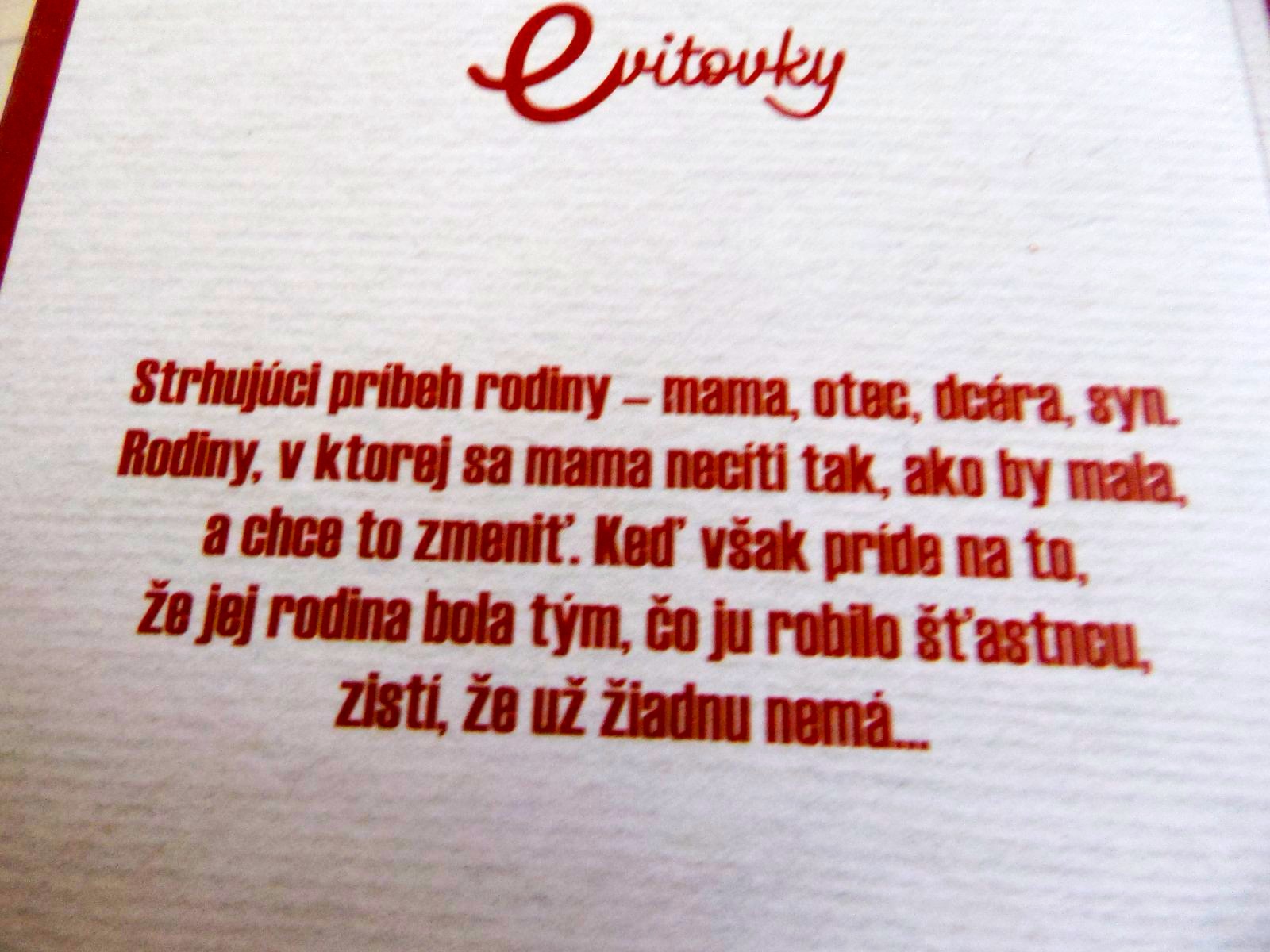 Evita je zárukou skvelého a pohodového čítania. Nový - tentokrát o čosi drsnejší príbeh - je opäť zasadený do prostredia rodiny a vzťahov v nej... Napokon, to o čom žijeme, Evita trefne vyjadruje vo všetkých svojich knihách.