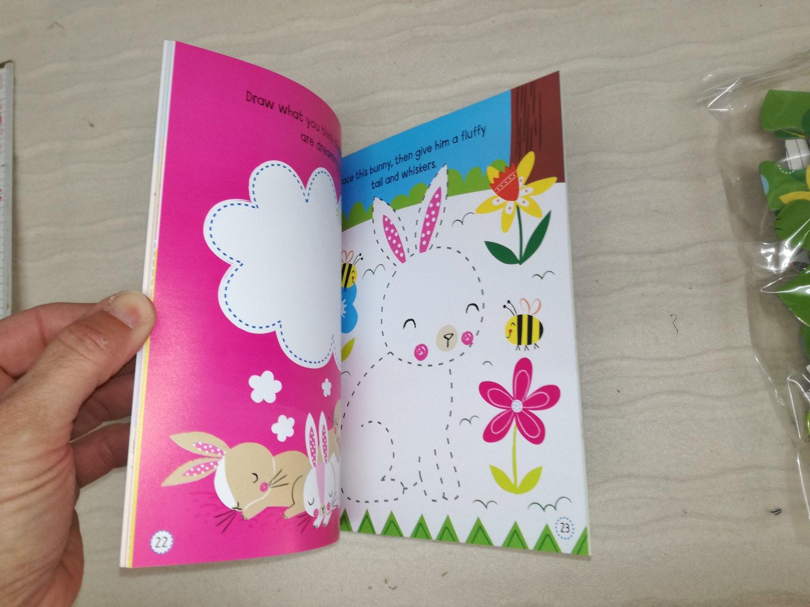 V kartonovej kazete s ruckou je knizka s aktivitami + obojstranne puzzle (jedna strana na vymalovanie).