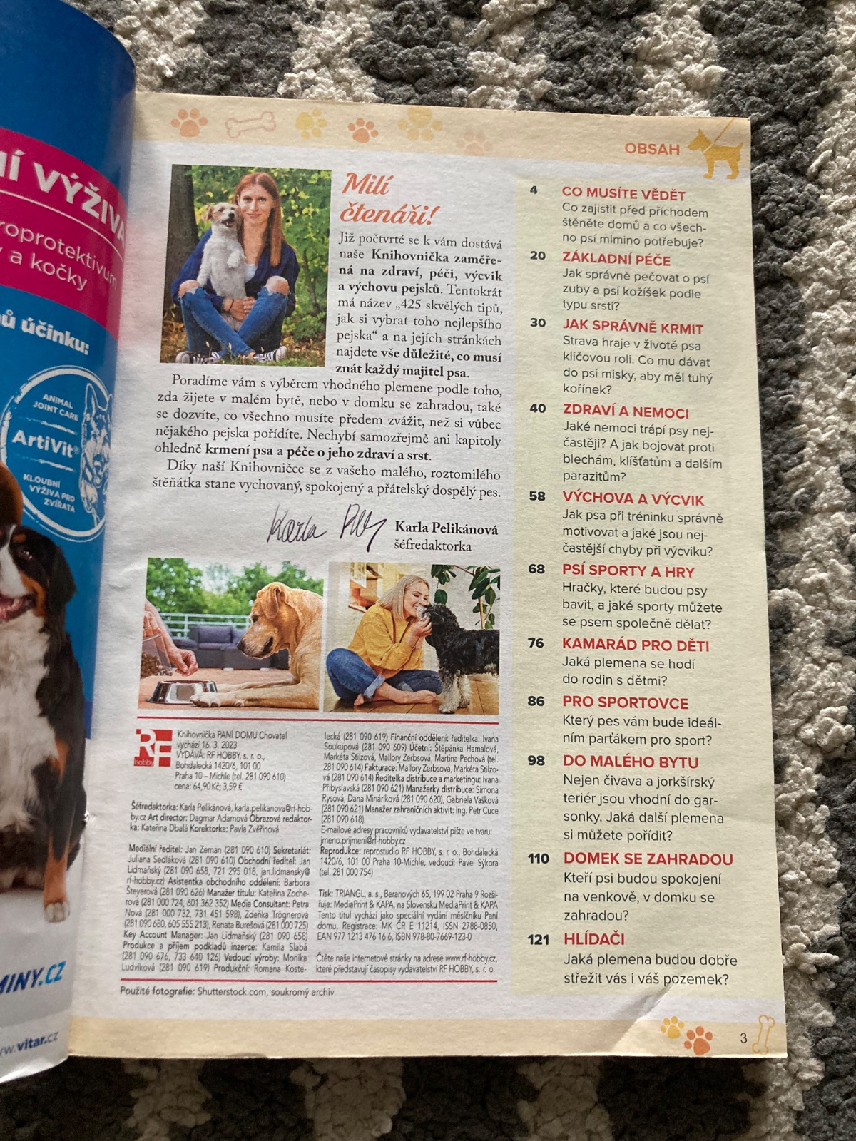 📌Knihovnička Chovatel zaměřená na zdraví, péči, výcvik a výchovu pejsků. Tentokrát má název „425 skvělých tipů, jak si vybrat toho nejlepšího pejska“ a na jejích stránkách najdete vše důležité, co musí znát každý majitel psa. Poradíme vám s výběrem vhodného plemene podle toho, zda žijete v malém bytě, nebo v domku se zahradou, také se dozvíte, co všechno musíte předem zvážit, než si vůbec nějakého pejska pořídíte. Nechybí samozřejmě ani kapitoly ohledně krmení psa a péče o jeho zdraví a srst. Díky naší Knihovničce se z vašeho malého, roztomilého štěňátka stane vychovaný, spokojený a přátelský dospělý pes.