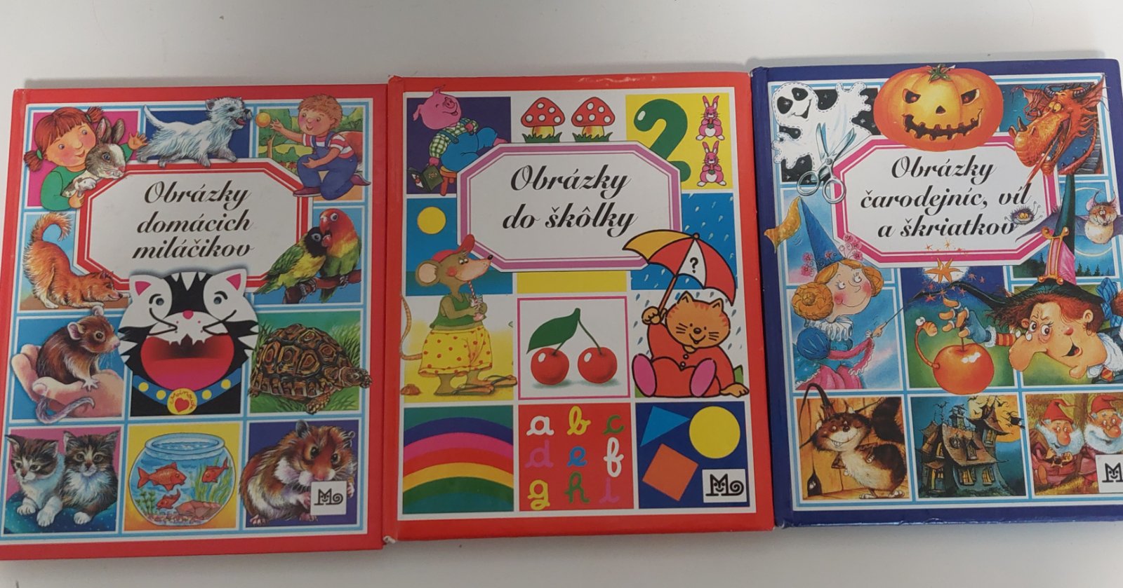 Vacsina v zachovalom stave. Mensie nedostatky su v obrazky zo skolky ( niektore strany su popisane fixou) a carodejnice ( poskodenie na vazbe). Ta je za 6. Ostatne 8 eur/ ks