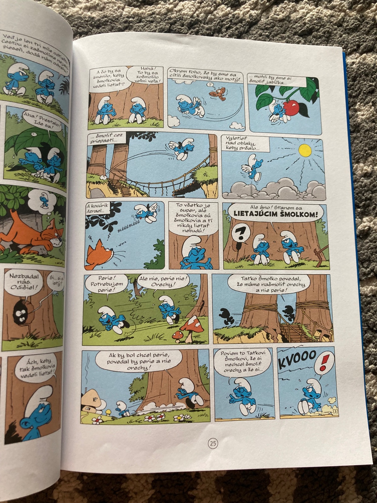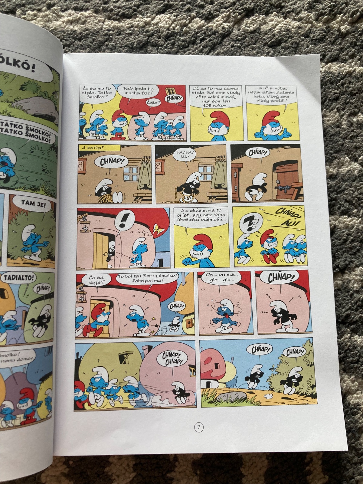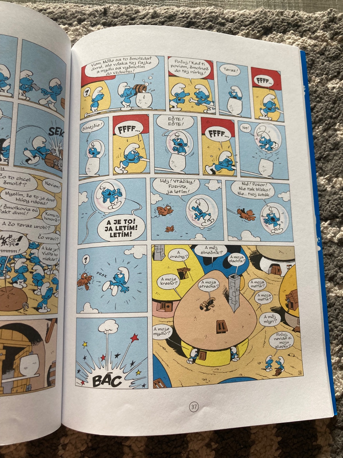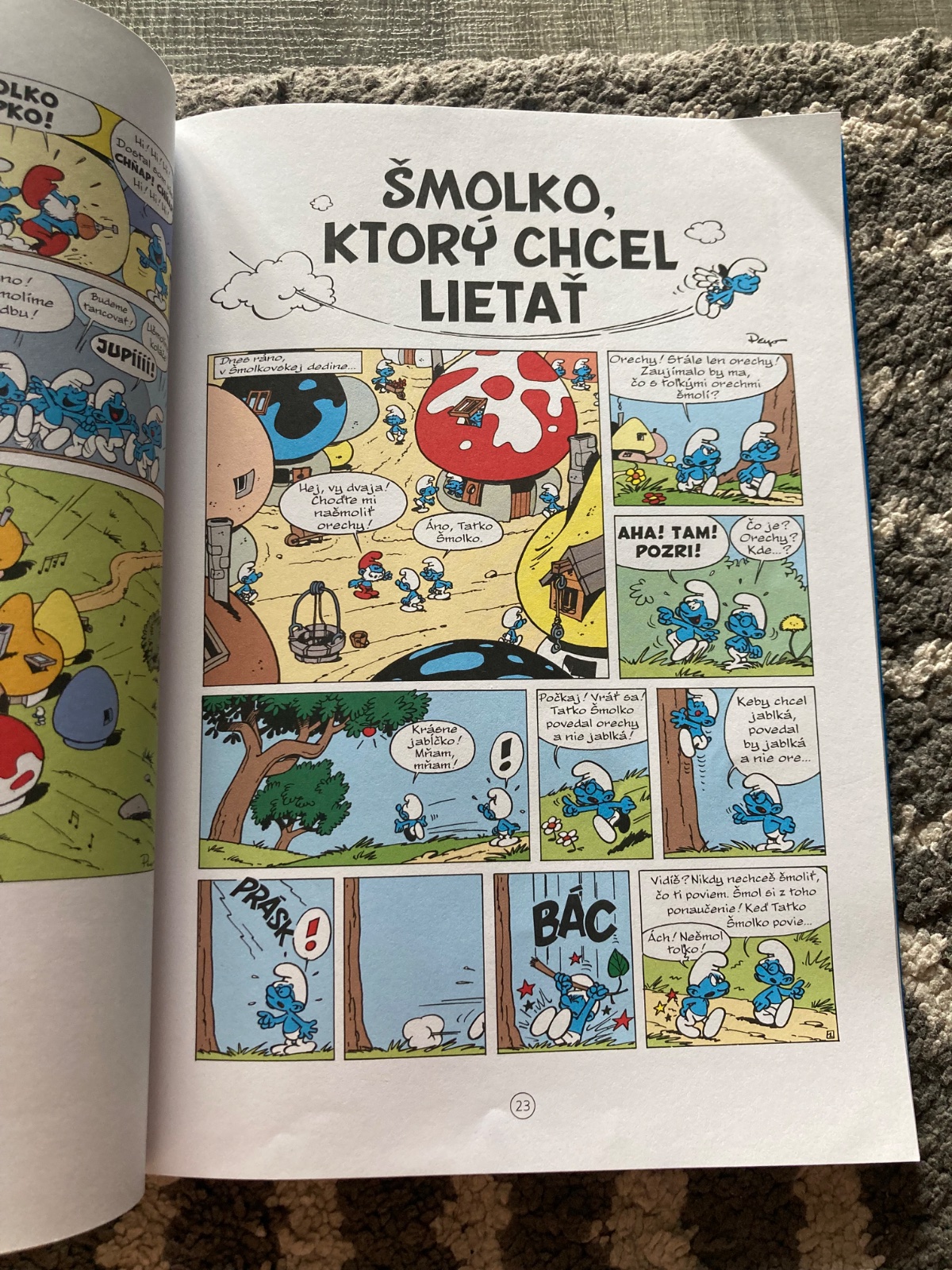 📌 Kniha obsahuje aj ďalšie komiksové príbehy: príbeh Zlodej šmolkov a Šmolko, ktorý chcel lietať.