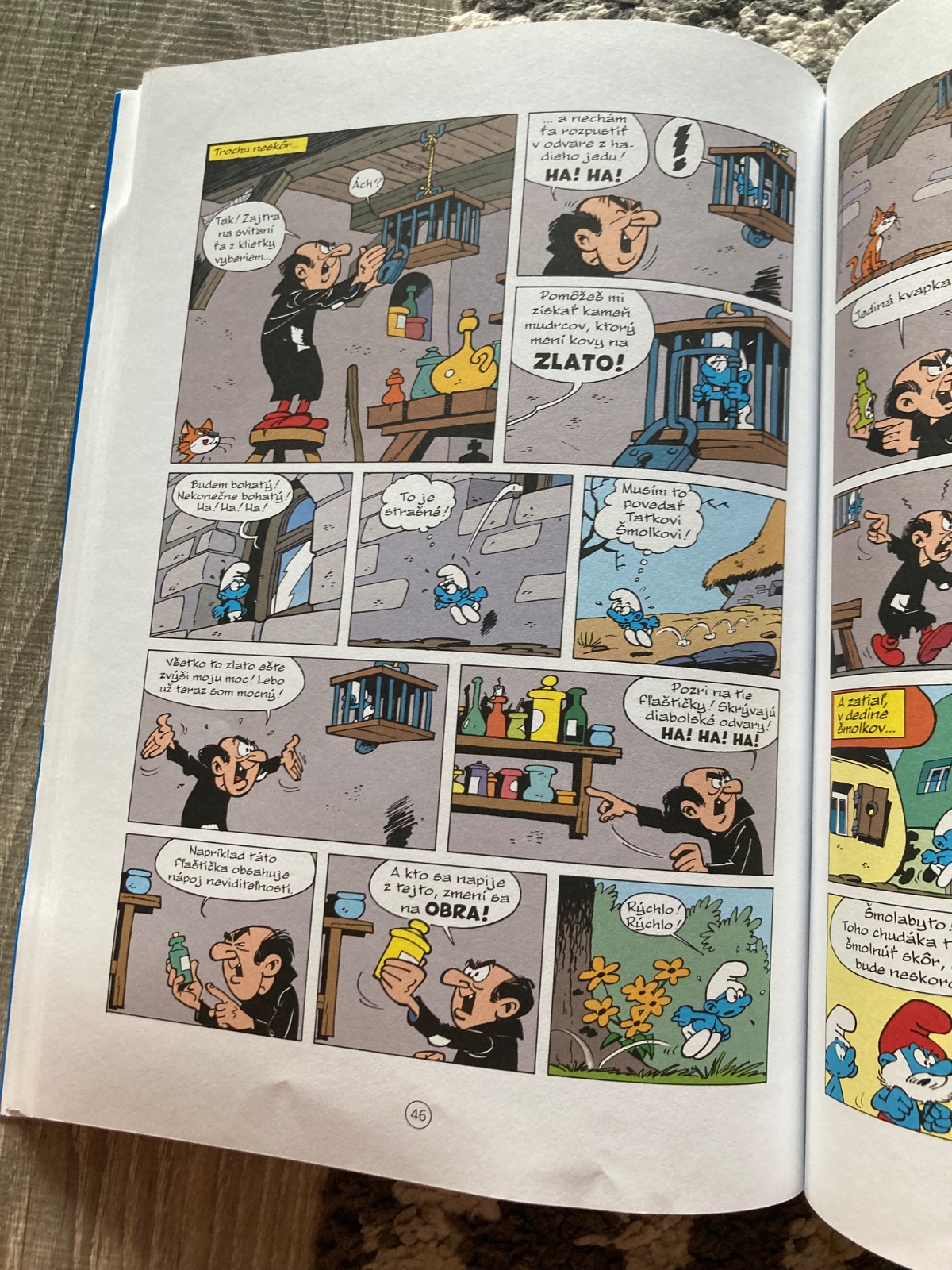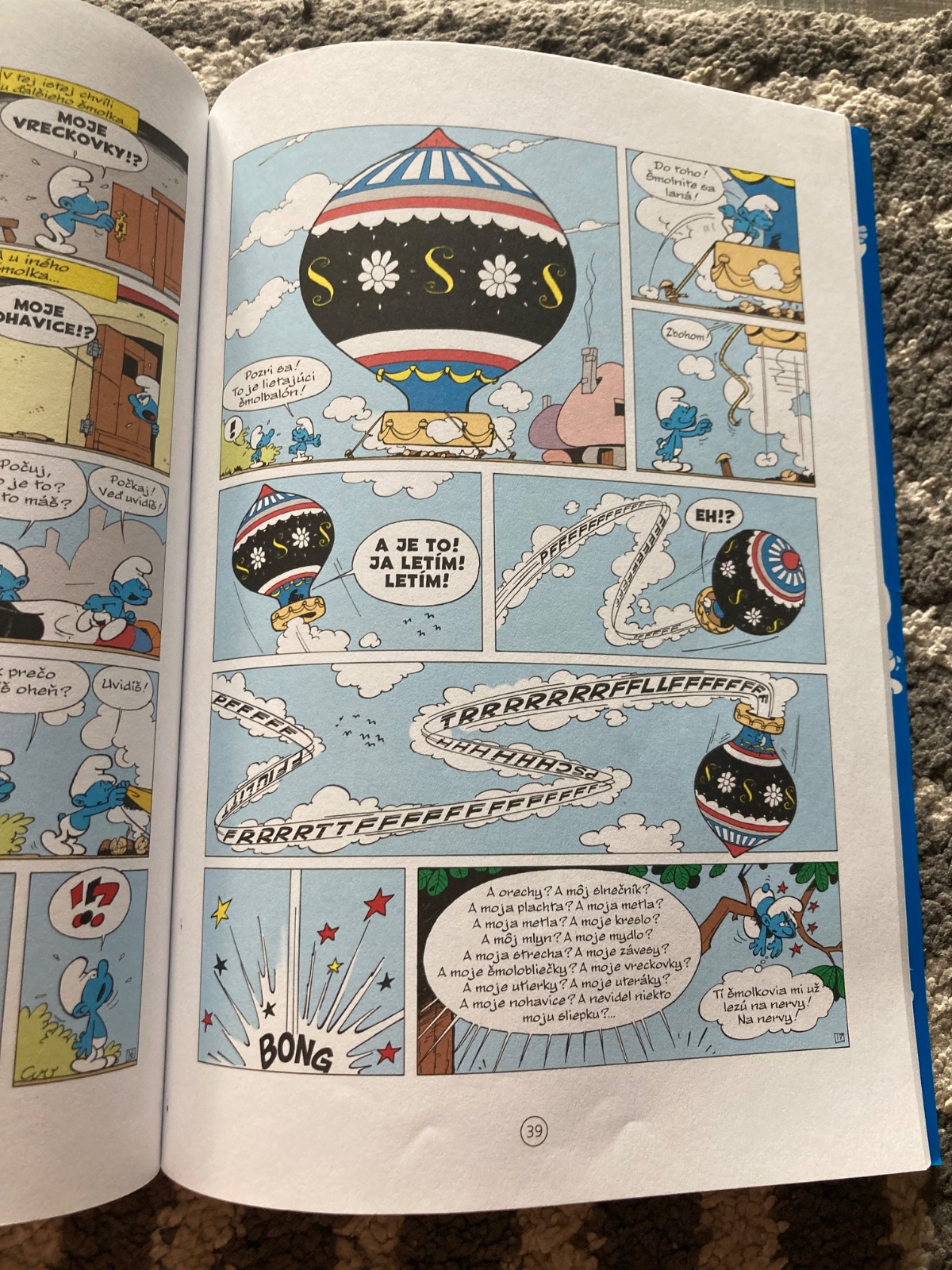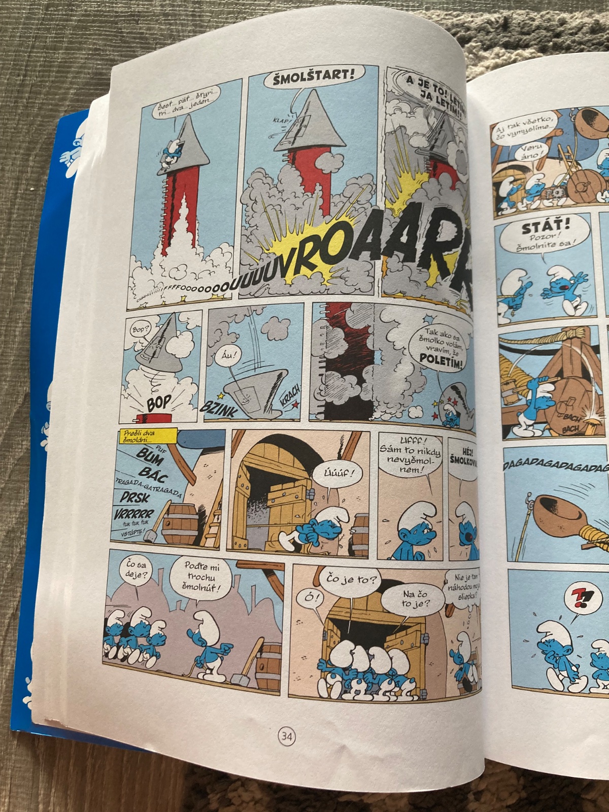 📌 Kniha obsahuje aj ďalšie komiksové príbehy: príbeh Zlodej šmolkov a Šmolko, ktorý chcel lietať.