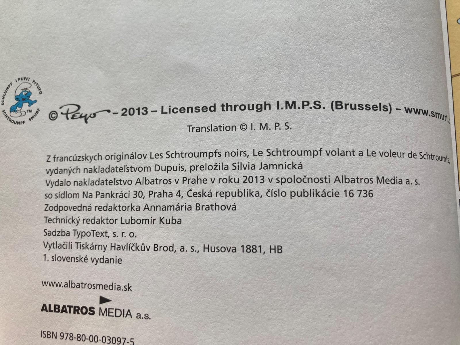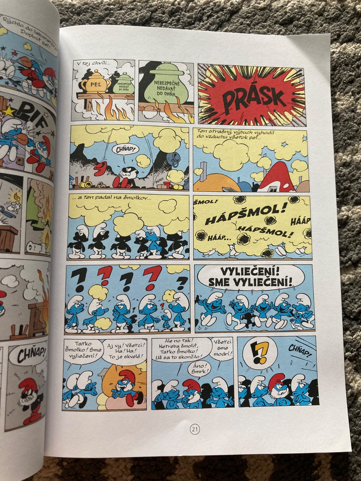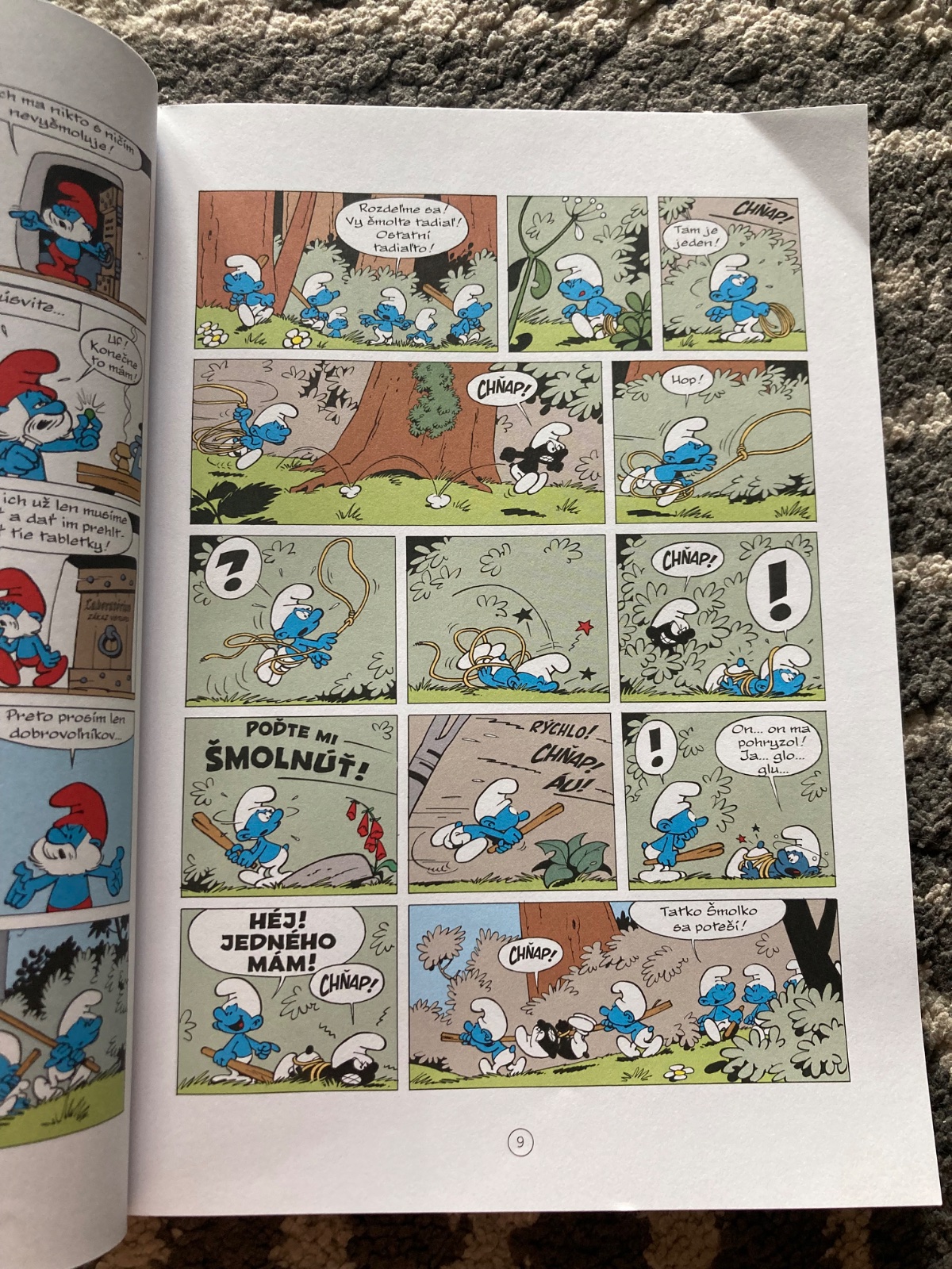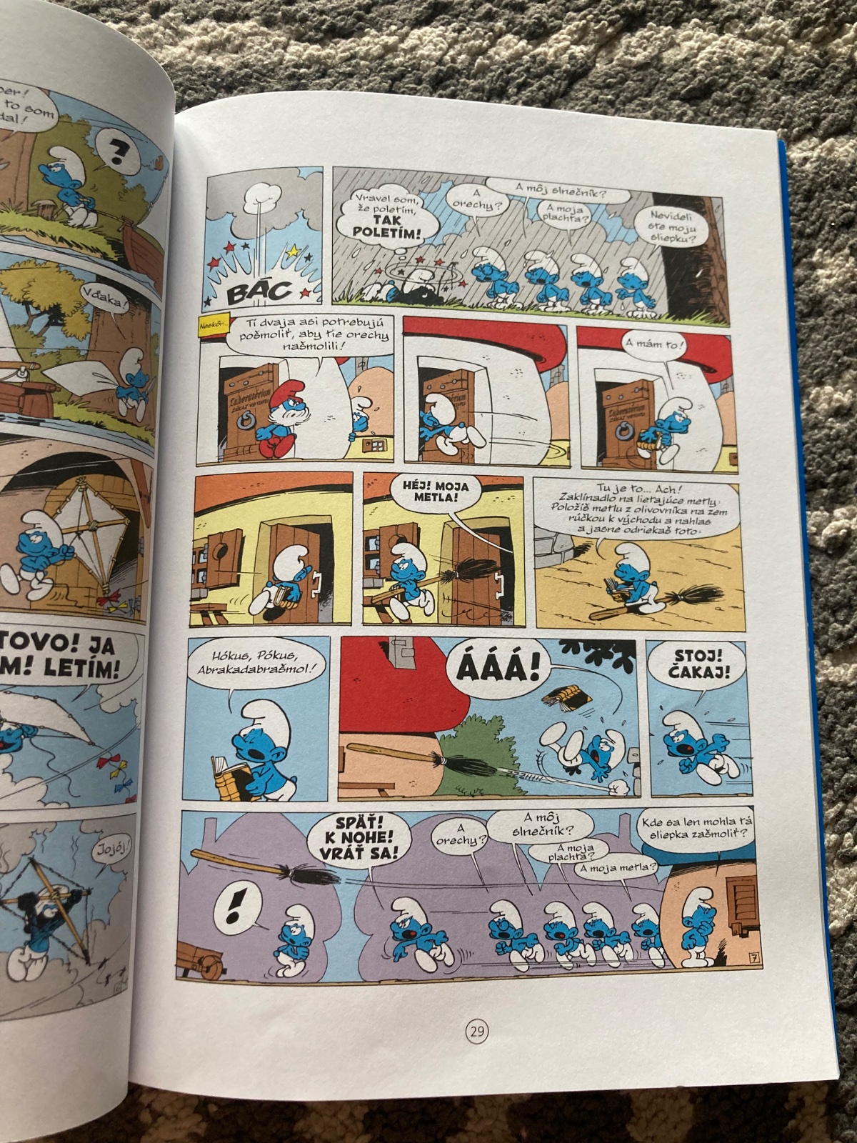 📌 Kniha obsahuje aj ďalšie komiksové príbehy: príbeh Zlodej šmolkov a Šmolko, ktorý chcel lietať.