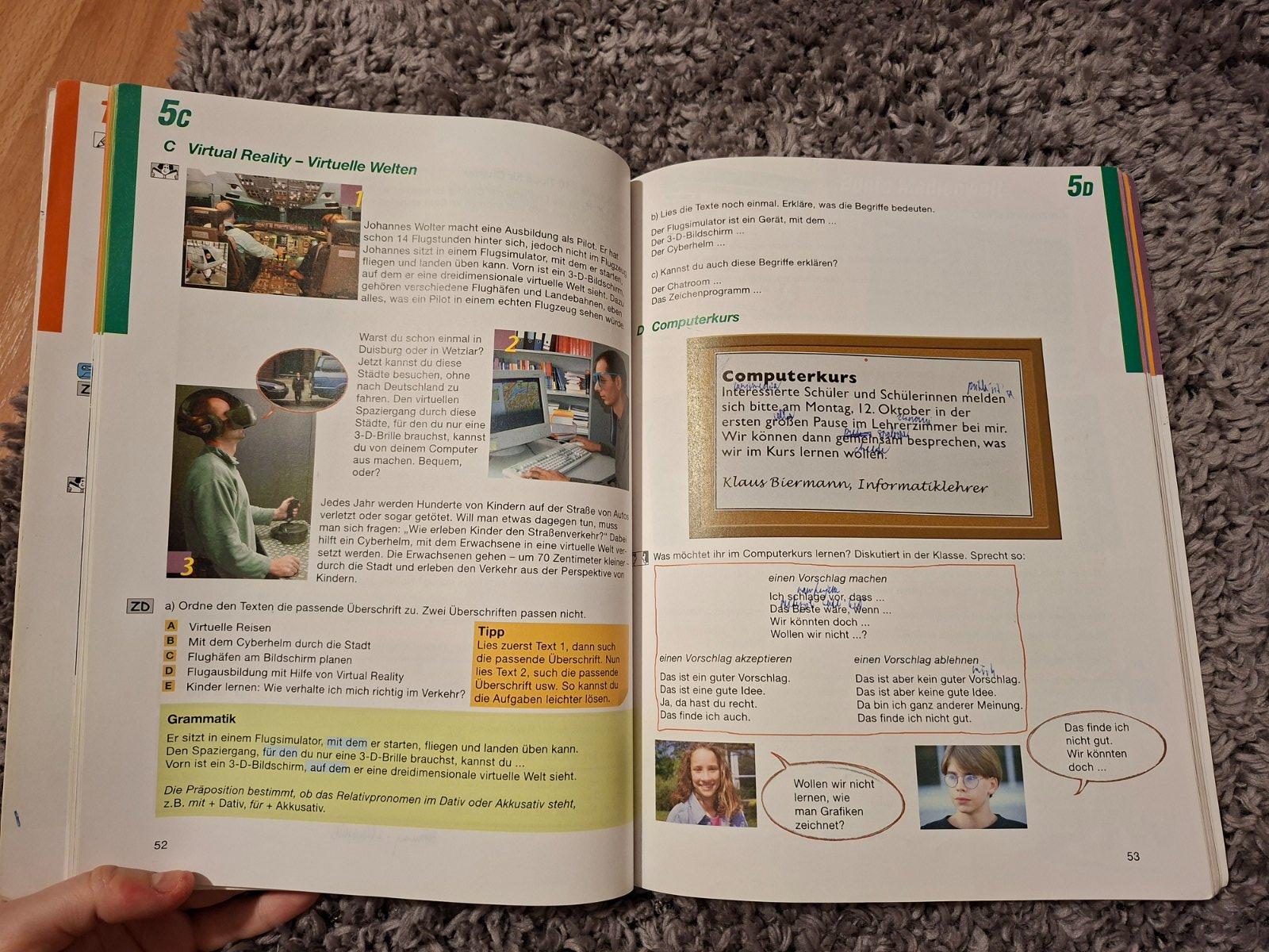 Predám učebnicu nemeckého jazyka pre SŠ. Pingpong 3 Dein Deutschbuch. Cena na internete sa pohybuje okolo 18€. Používaná, niektoré strany popísané perom. Má zalepené rohy, aby sa neničila. Cena 4€ kvôli popísaniu.