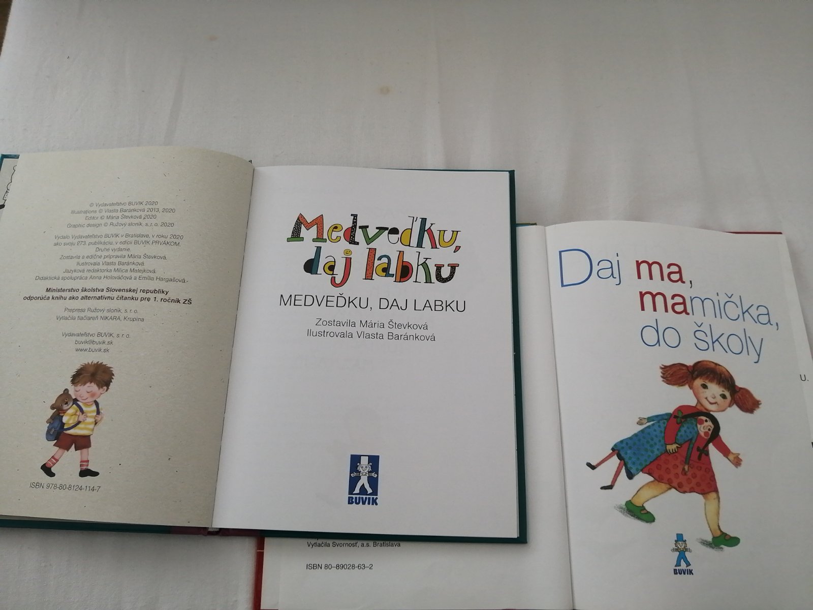 Predám knižky Medvedku daj labku a Daj ma mamička do školy. Sú v nej rozprávky, riekanky, básničky a pod. Od vydavateľstva Buvik. Medveď ku daj labku je vynikajúci stav, druhá pekný čítaný stav.