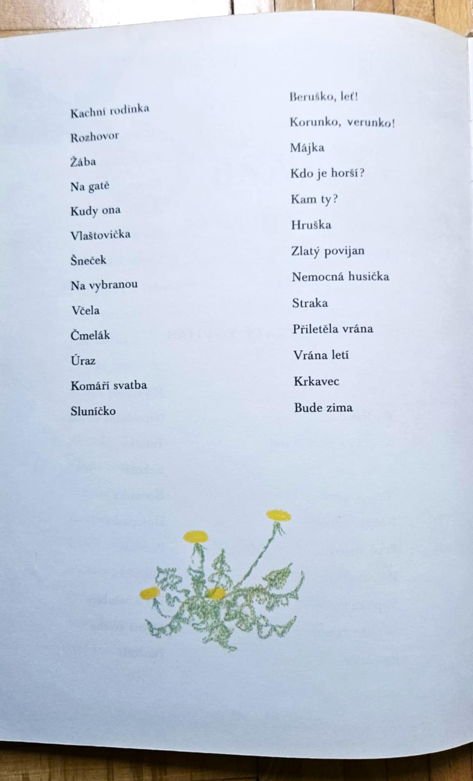 Zbierka detských básničiek, riekaniek či pesničiek sprevádzaných ilustráciami Adolfa Zábranského. Á bé cé dé mačka pradie, Prší, prší, Išiel zajko brázdou, Ide, ide myška, Skákal pes, Lezie žaba do bezu, Beží líška k táboru ...