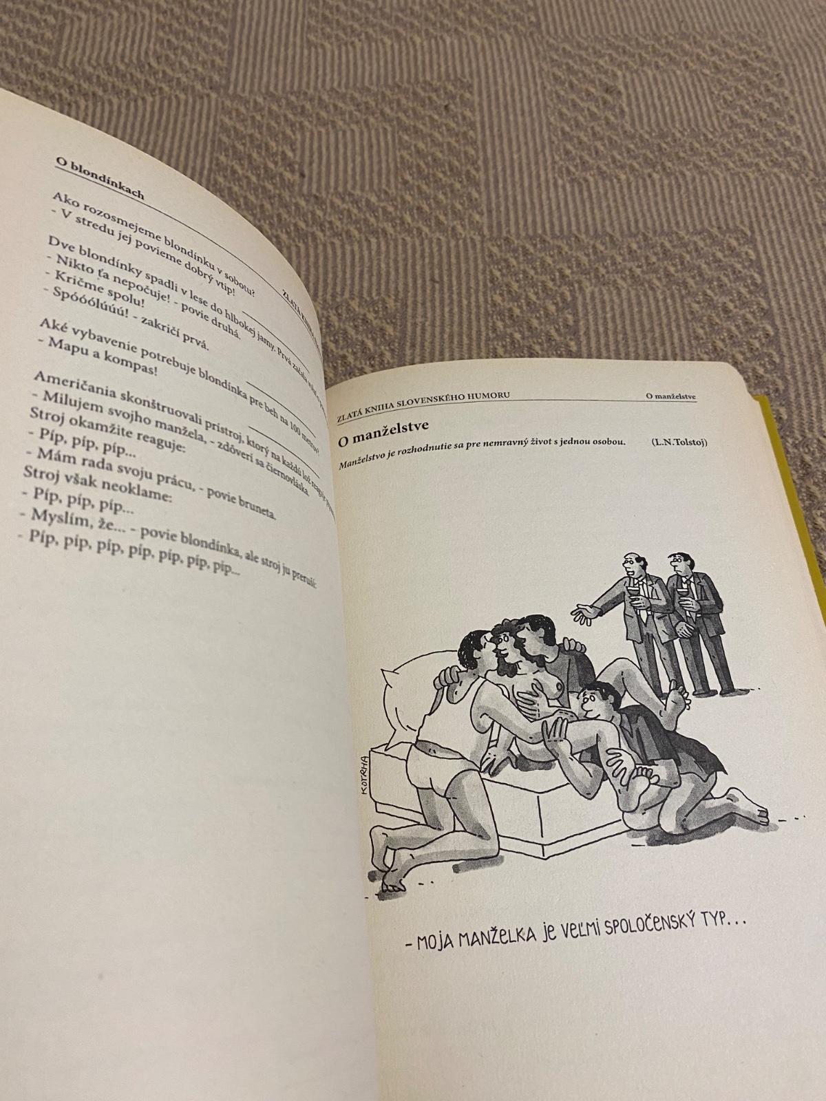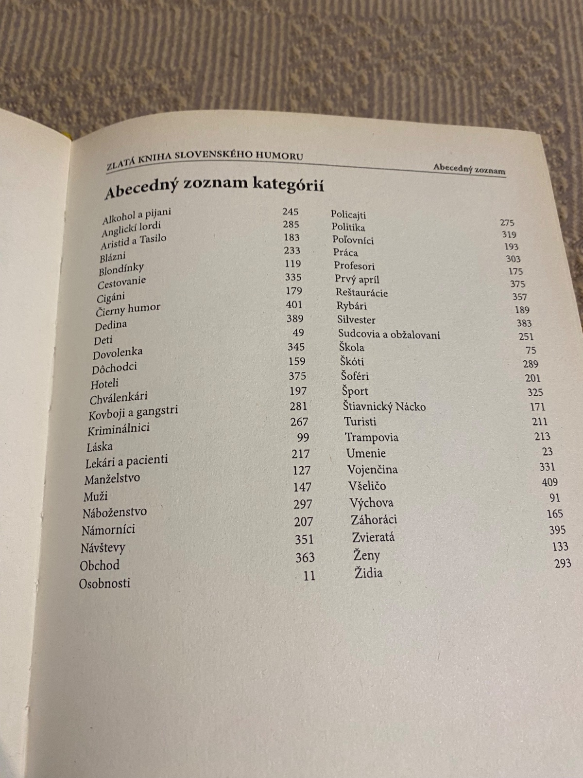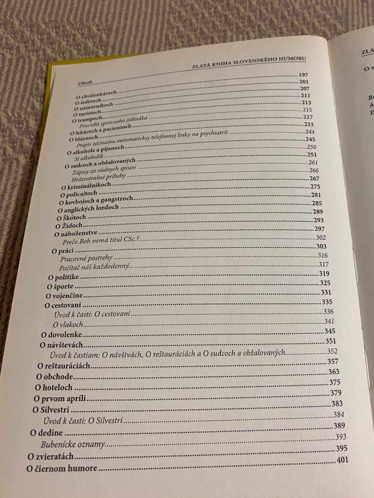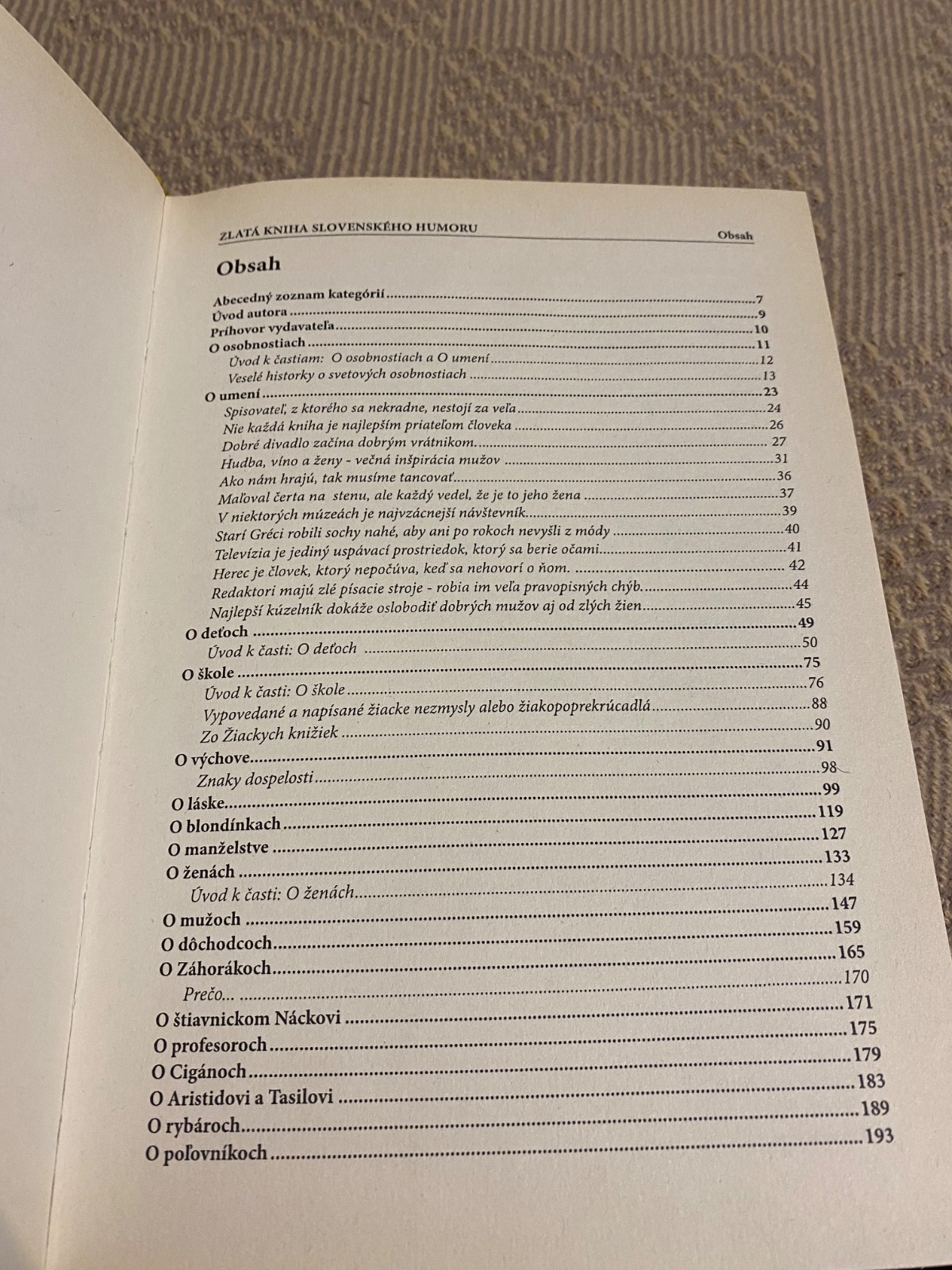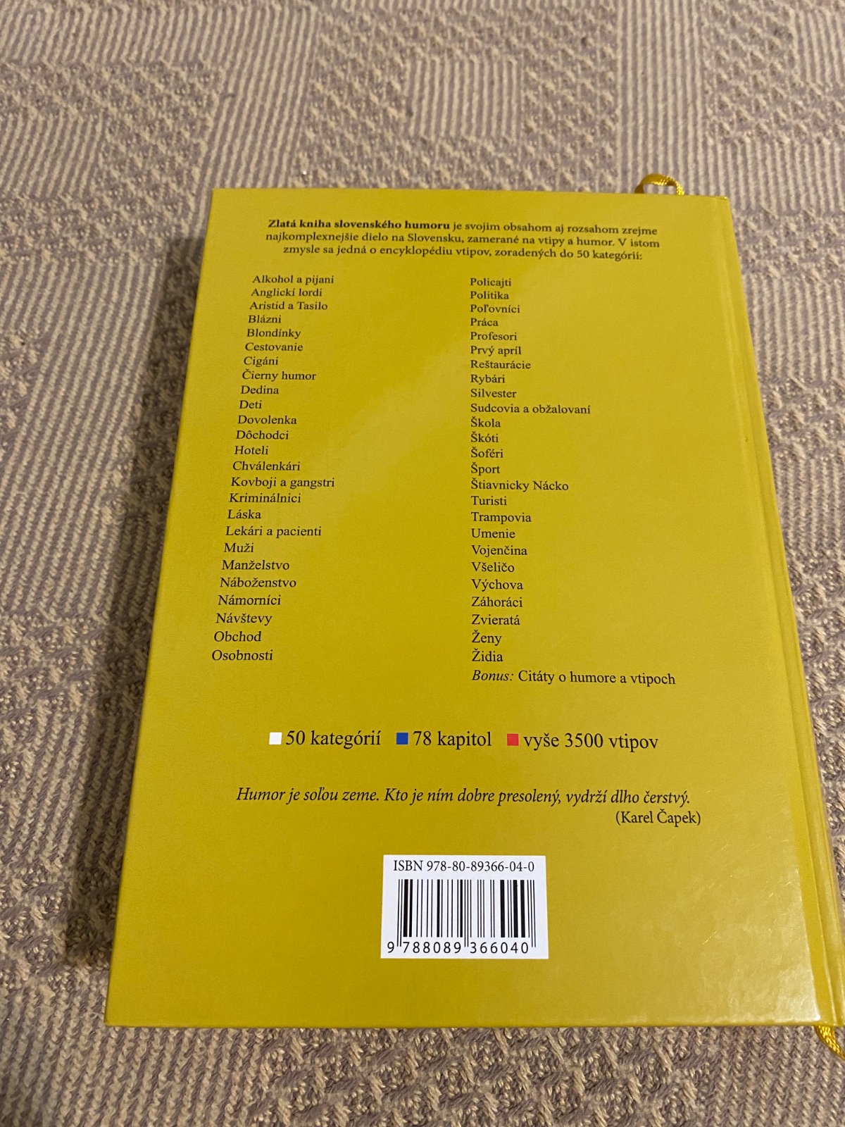 Vyše 3500 vtipov zoradených do 50 kategórii na 420 stranách veľkého formátu v tvrdej väzbe. Unikátna kniha humoru na Slovensku! Každá kategória začína ilustrovaným vtipom známeho karikaturistu Ľ. Kotrhu.