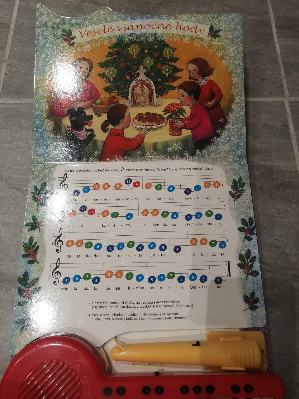 12 obľúbených Vianočných kolied s notovým záznamom. Vyber si koledu a vyťukávaj na klávesoch podľa farebných nôt. Stav 99/100. Možno spievať s mikrofónom. Hrať z predvoľby, alebo sám.