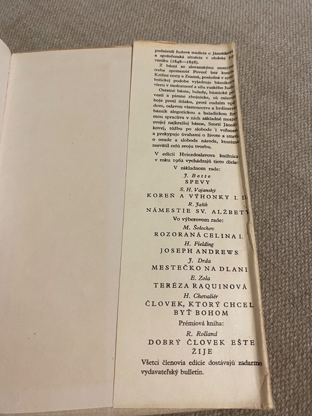 Vydalo Slovenské vydavateľstvo krásnej literatúry, Bra- tislava 1962. Hviezdoslavova knižnica, zväzok 73. 56. zv. základného radu. Rediguje dr. Ondrej Mrlian v spolupráci s Hviezdoslavovou spoločnosťou. Doslov napisal dr. Milan Píšút. Poznámky na základe Súborného diela J. Bottu, SVKL 1955, spracovala Marta Hrušovská. Obálku, väzbu a frontispice navrhol Viliam Chmel. Graficky upravil Dušan Šulc. Vydanie v SVKL prvé,