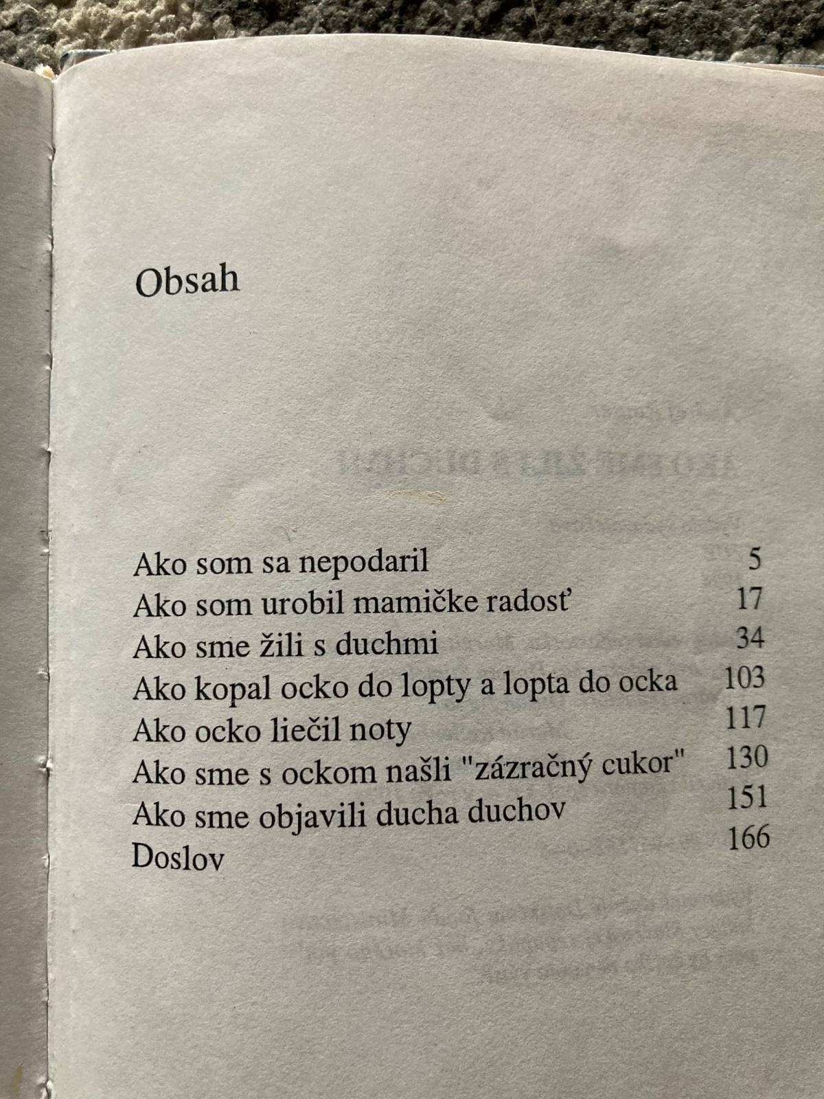 🔹Príbehy: Ako som sa nepodaril, Ako som urobil mamičke radosť, Ako sme žili s duchmi, Ako kopal ocko do lopty a lopta do ocka, Ako ocko liečil noty, Ako sme s ockom našli zázračný cukor, Ako sme objavili ducha duchov