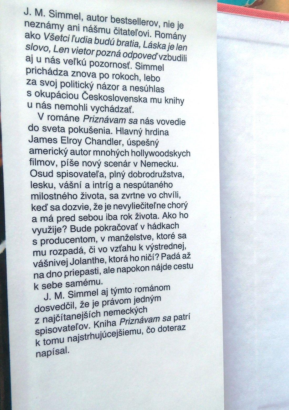 Priznávam sa , Johannes Mario Simmel , Smena , 1992 - 2 € - 410 g