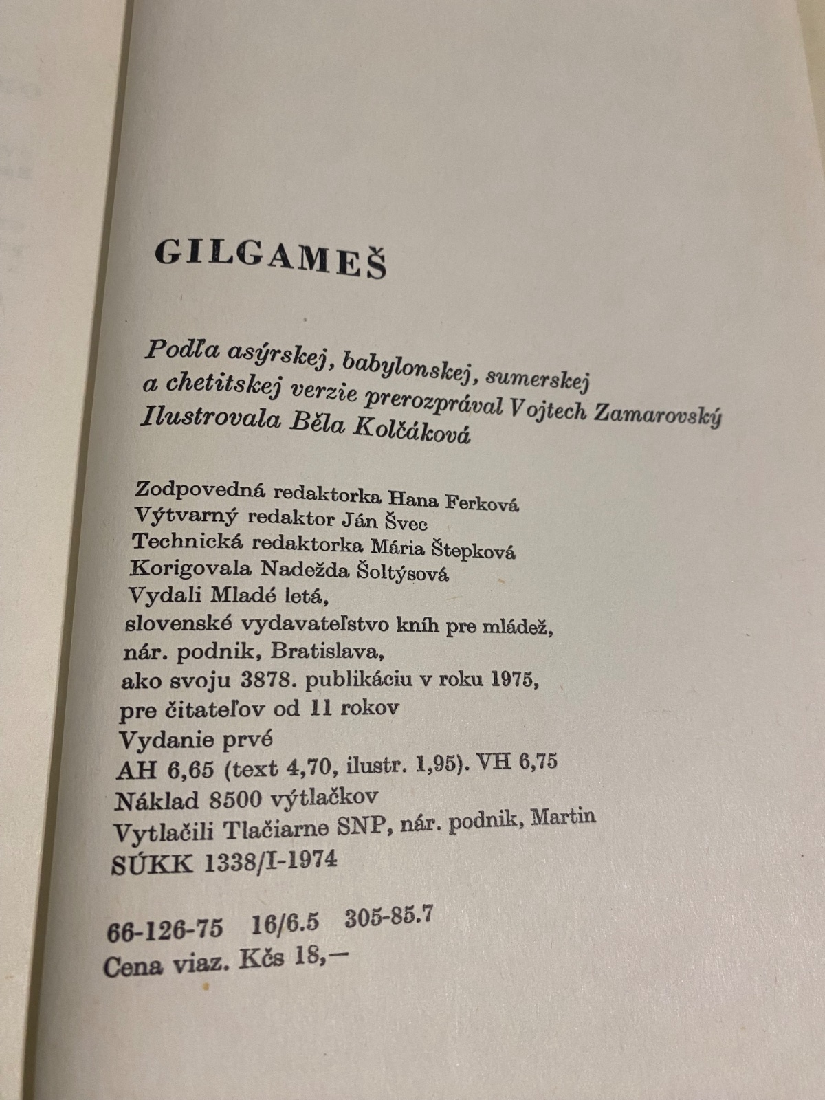 Podľa asýrskej, babylonskej, sumerskej a chetitskej verzie prerozprával Vojtech Zamarovský Ilustrovala Běla Kolčákovά