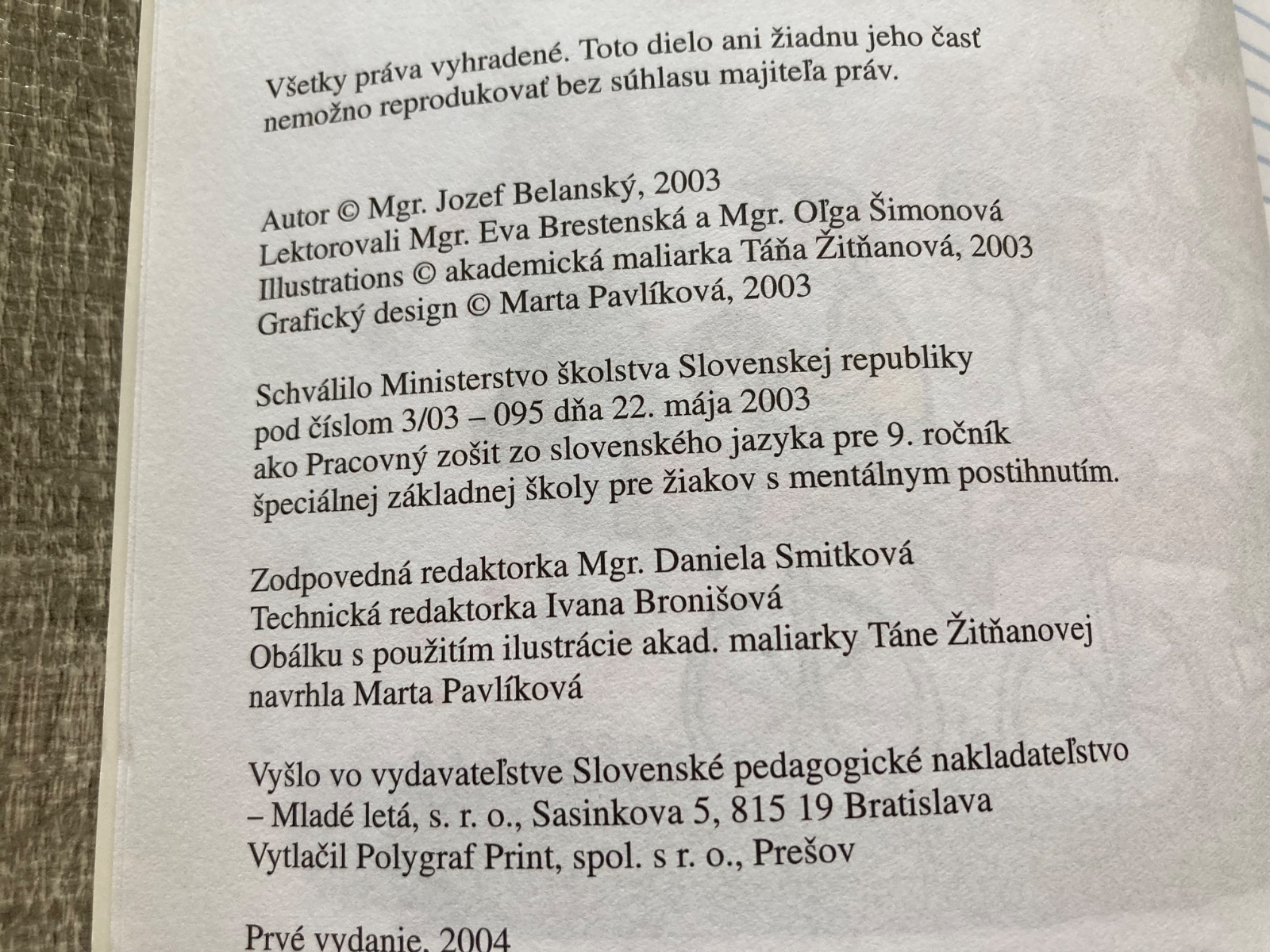 📌Pracovný zošit zo slovenského jazyka pre 9. ročník ŠZŠ (špeciálnych základných škôl)