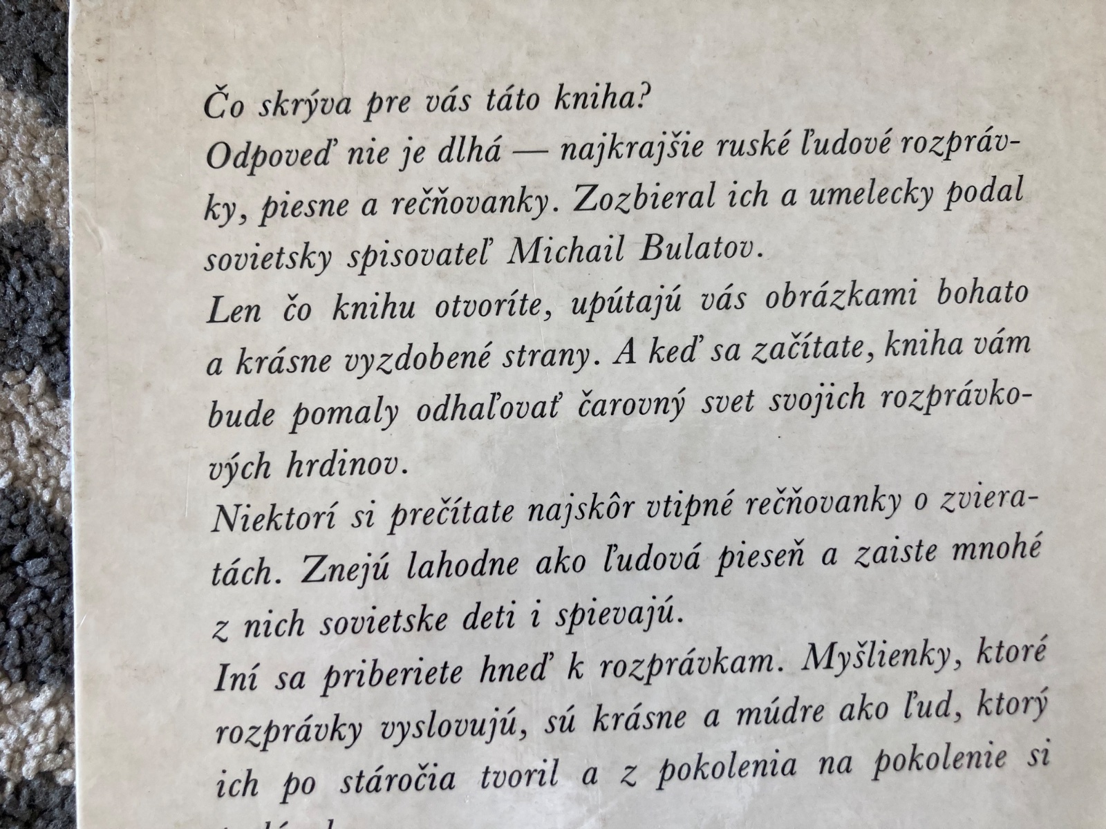 📌Zozbieral ich a umelecky podal sovietsky spisovateľ Michail Bulatov. Každá rozprávka, pesnička či rečňovanka povie vám voľačo krásne a hlboké o ľuďoch, zvieratách a prírode, aby vám pomohla poznávať a obdivovať skutočný život okolo nás.
