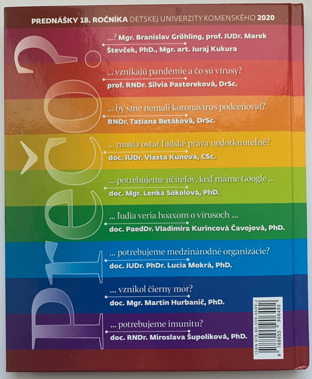 Špičkoví odborníci ponúkajú odpovede na základné detské otázky. Súhrn prednášok, ktoré odzneli na 18. ročníku Detskej univerzity Komenského v Divadle Aréna. Je zaujímavým, ale aj poučným čítaním nielen pre deti.