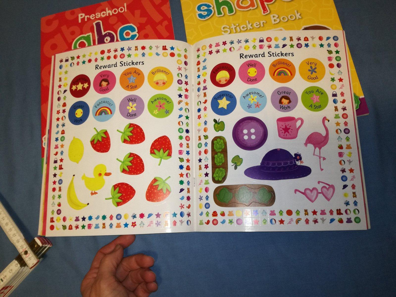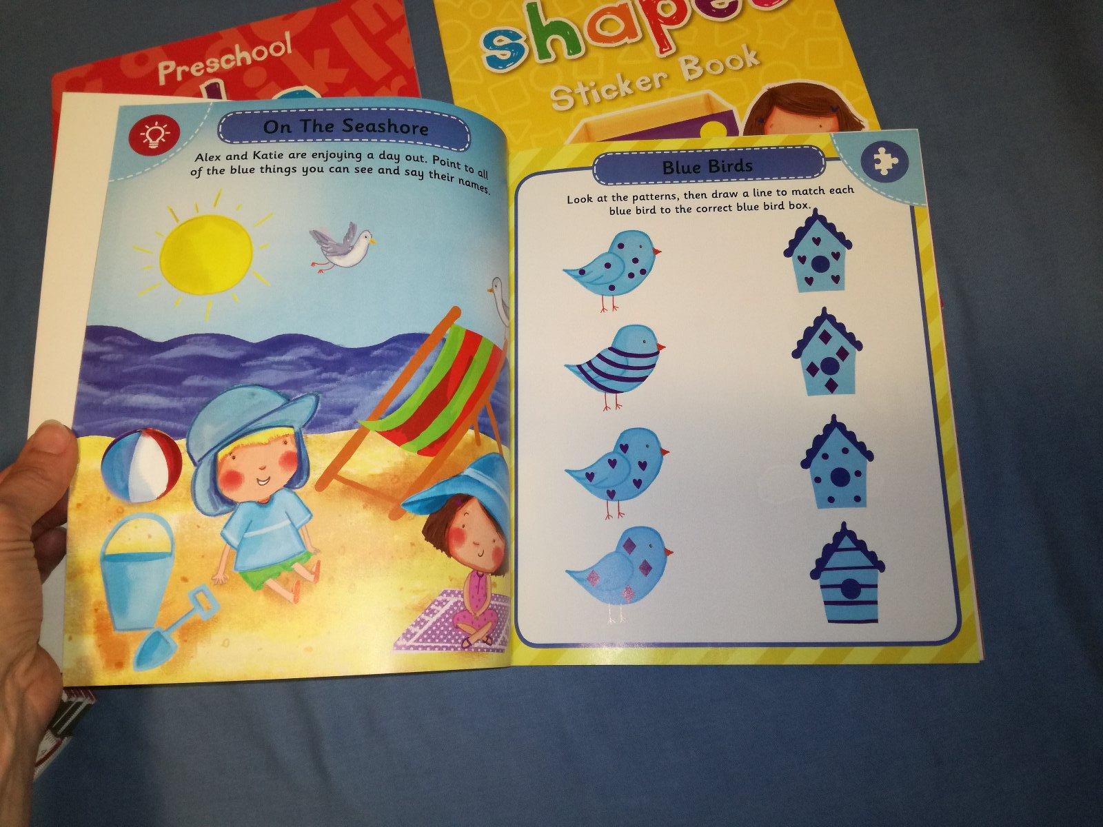 Pracovne zosity pre skolkarov na precvicenie farieb / tvarov / prvych pismen. Vnutri su nalepky a vylupovacky / karty.