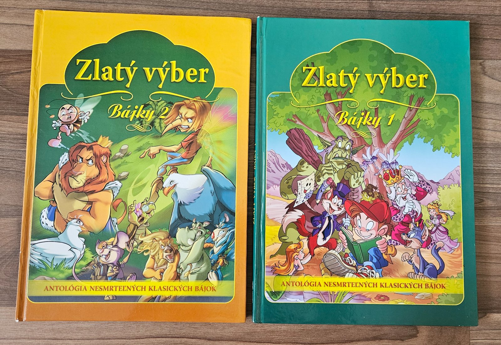 Ponúkam 2 knihy bájok Zlatý výber. Bohato ilustrované knihy plné putavých a poučných bájok.