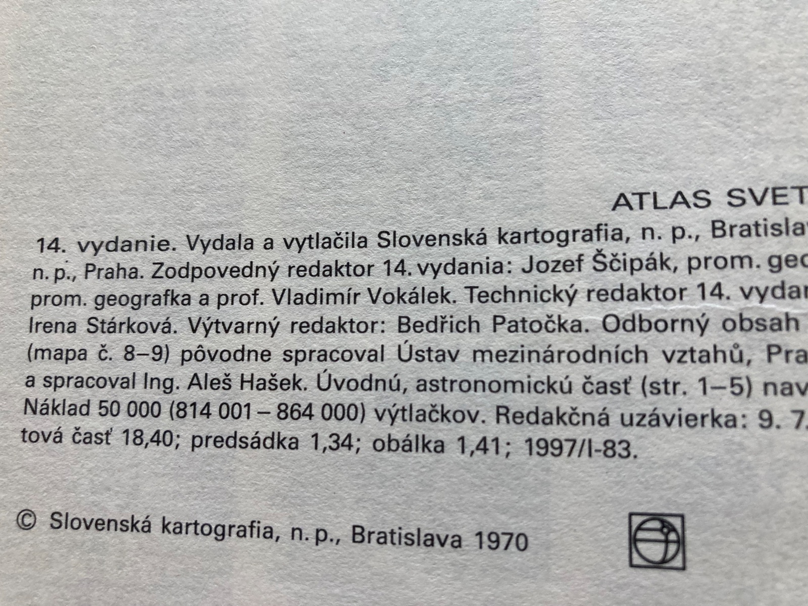 📌14. vydanie učebnej pomôcky pre ZDŠ vydanej na podklade výskumných prác Výskumného ústavu geodetického, topografického a kartografického v Prahe