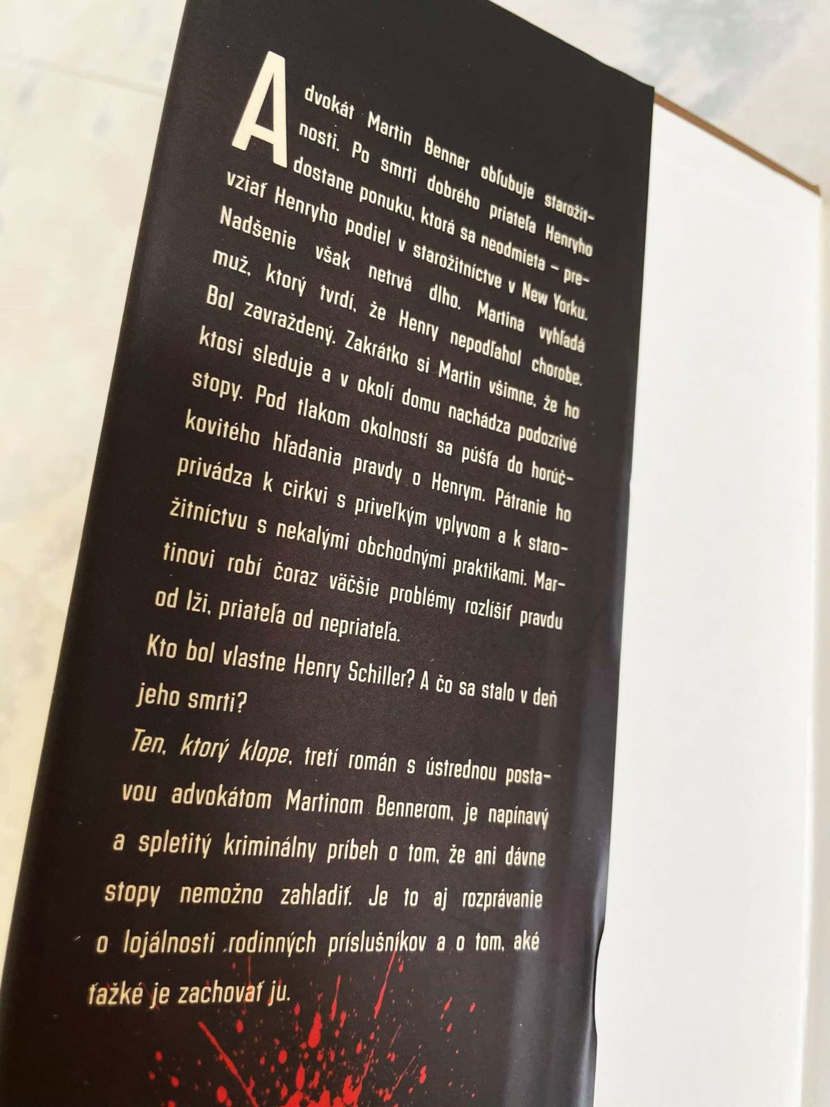 Ten, ktorý klope, tretí román s ústrednou postavou advokátom Martinom Bennerom, je napínavý a spletitý kriminálny príbeh o tom, že ani dávne stopy nemožno zahladiť. Je to aj rozprávanie o lojálnosti rodinných príslušníkov a o tom, aké ťažké je zachovať ju.